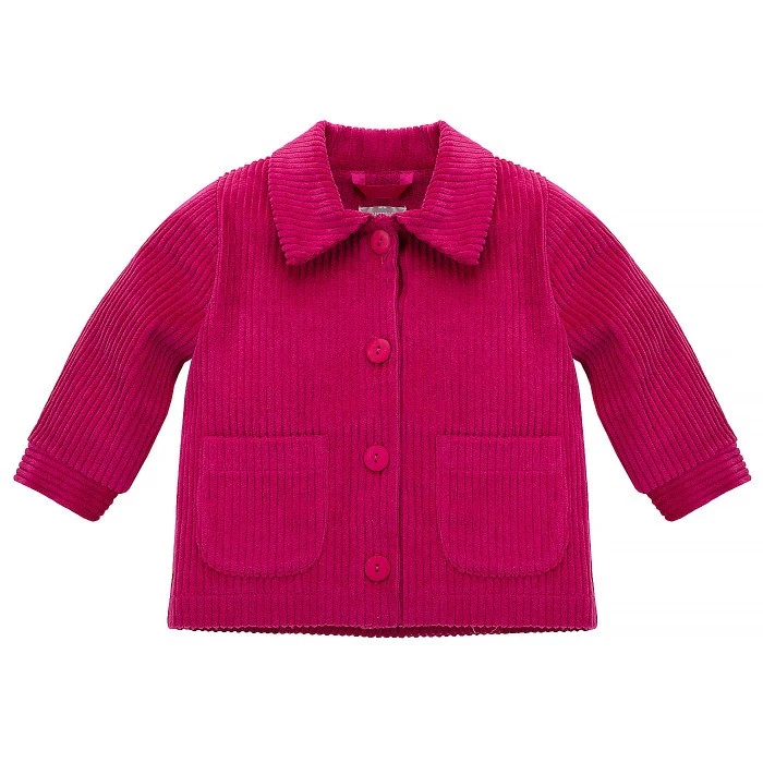 Kurtka sztruksowa w modnym kolorze fuksji, uszytą w 100% z delikatnej, certyfikowanej bawełny. To idealne uzupełnienie stylizacji małej damy – doskonałe na wiosenne dni, chłodniejsze poranki i stylowe wyjścia.