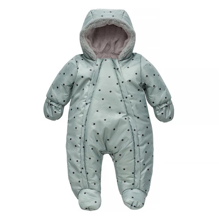 Miętowy kombinezon zimowy dla niemowląt w kropeczki – kolekcja Winter