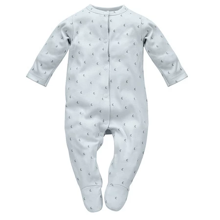 Ten praktyczny i wygodny pajacyk niemowlęcy z kolekcji Hello! to niezbędny element wyprawki dla noworodka. Uszyty został ze 100% miękkiej bawełny w kolorze niebieskim, ozdobionej subtelnym printem w księżyce. Nadruk wykonano metodą bezpiecznych farb wodnych, odpornych na pranie i codzienne użytkowanie, co gwarantuje trwałość i bezpieczeństwo dla wrażliwej skóry dziecka.
