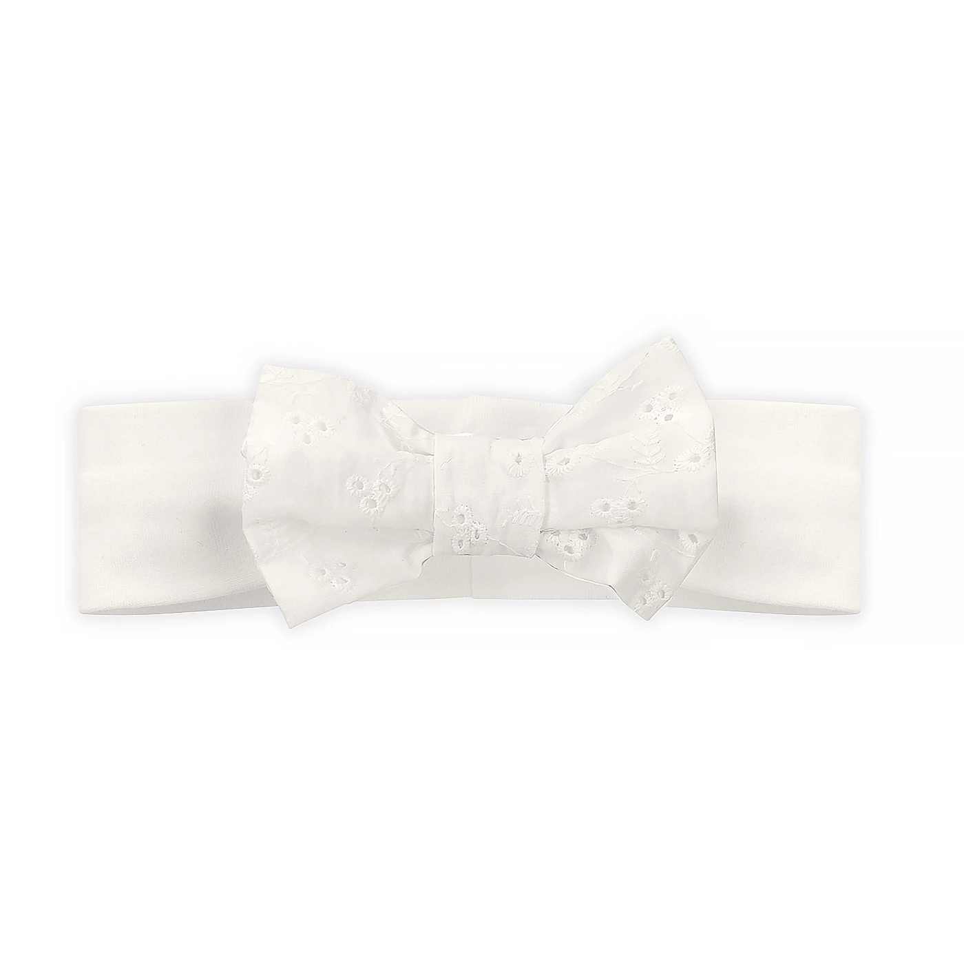 - Opaska dla dziewczynki ecru z kokardką – Bezuciskowa, bawełniana