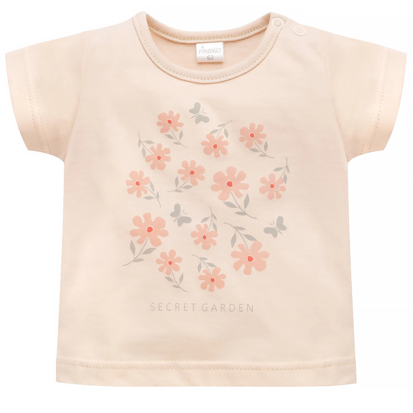 Dziewczęca bluzka z kolekcji Summer Garden to must-have w letniej garderobie każdej małej dziewczynki. Uszyta z miękkiej, 100% bawełny w pastelowym odcieniu beżu, zapewnia komfort noszenia podczas codziennych aktywności w domu, żłobku, przedszkolu oraz na spacerach i wakacyjnych wyjazdach.
