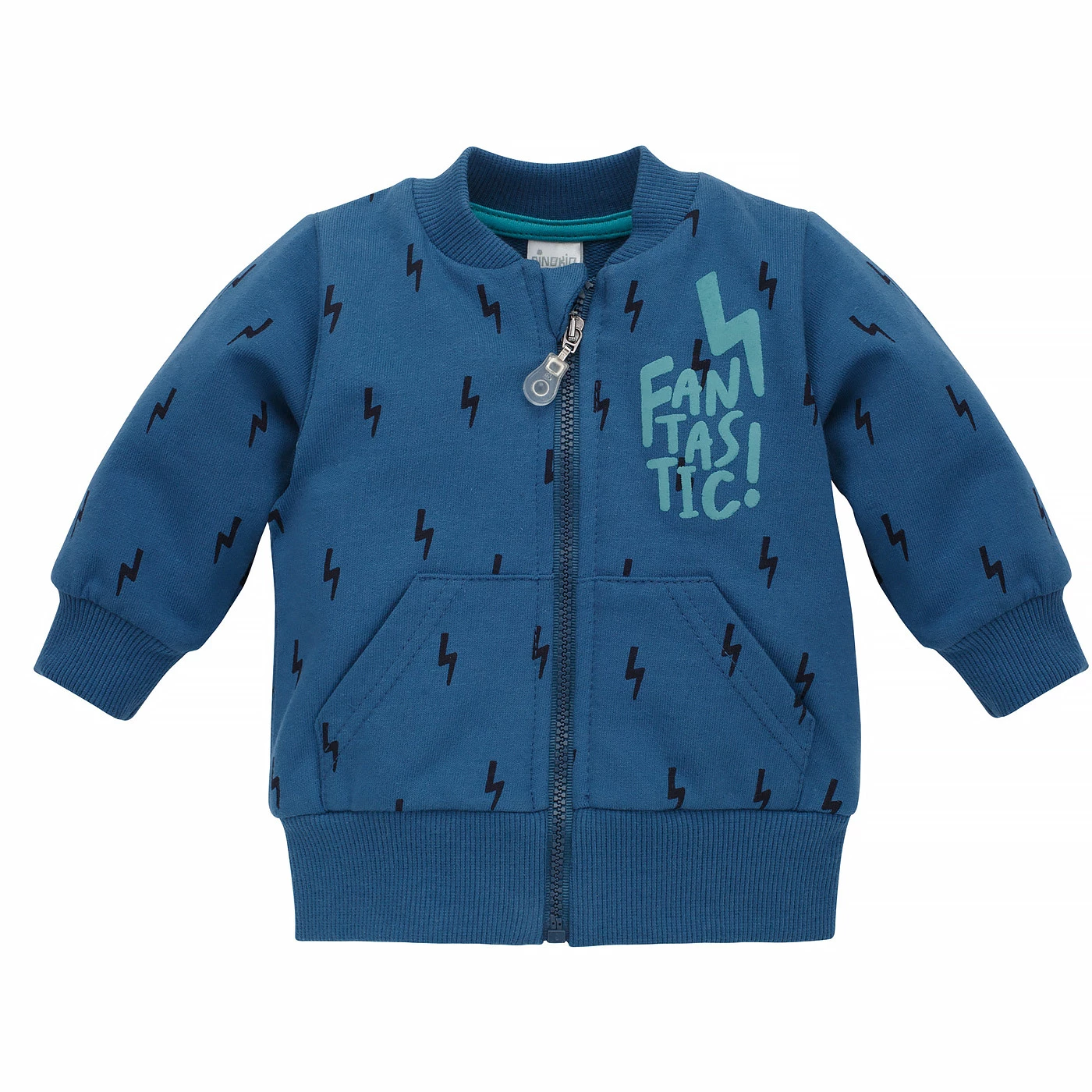 Chłopięca bluza rozpinana Orange Flip – ciemnoniebieska w czarne błyskawice z napisem „Fantastic!”