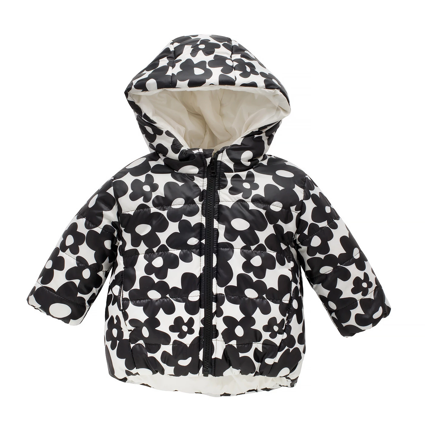 Biała kurtka dziecięca Winter z uroczym nadrukiem kwiatuszków to połączenie stylowego designu, ciepła i wygody – idealna na zimowe dni pełne zabawy i spacerów.