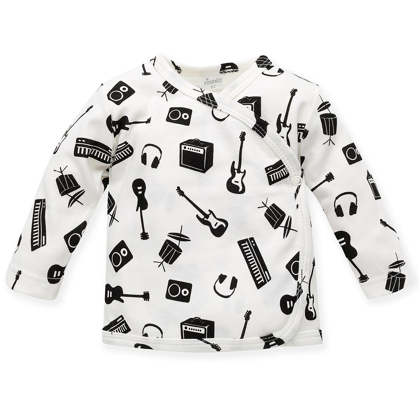 Wyjątkowy, rockowy nadruk z instrumentami muzycznymi wykonany został trwałą i bezpieczną metodą farb wodnych, które są odporne na częste pranie i codzienne użytkowanie. Dzięki temu kaftanik zachowuje swój wygląd na długo.