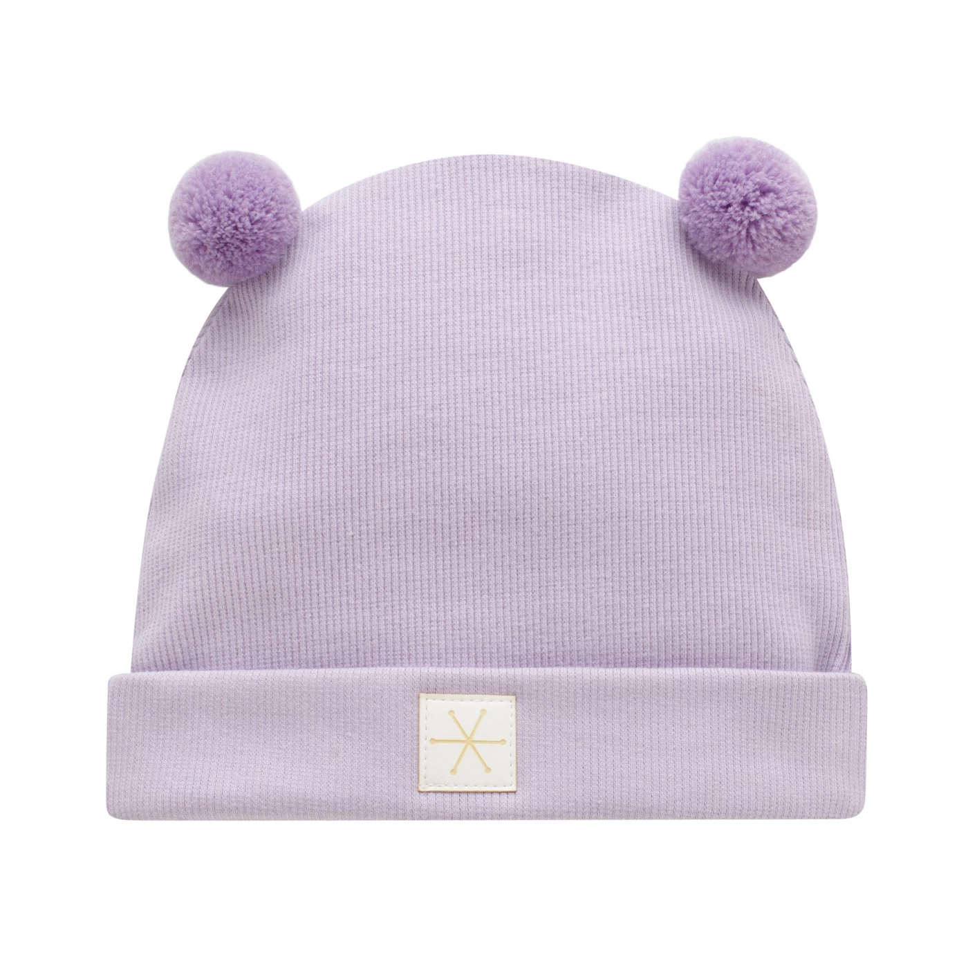 Czapka Niemowlęca Winter Fioletowy Z Dwoma Pomponami