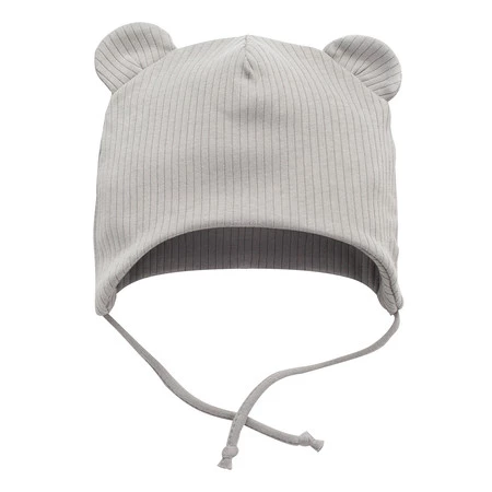 - Szara czapka niemowlęca w prążek wiązana pod brodą – kolekcja Lovely Day | Pinokio