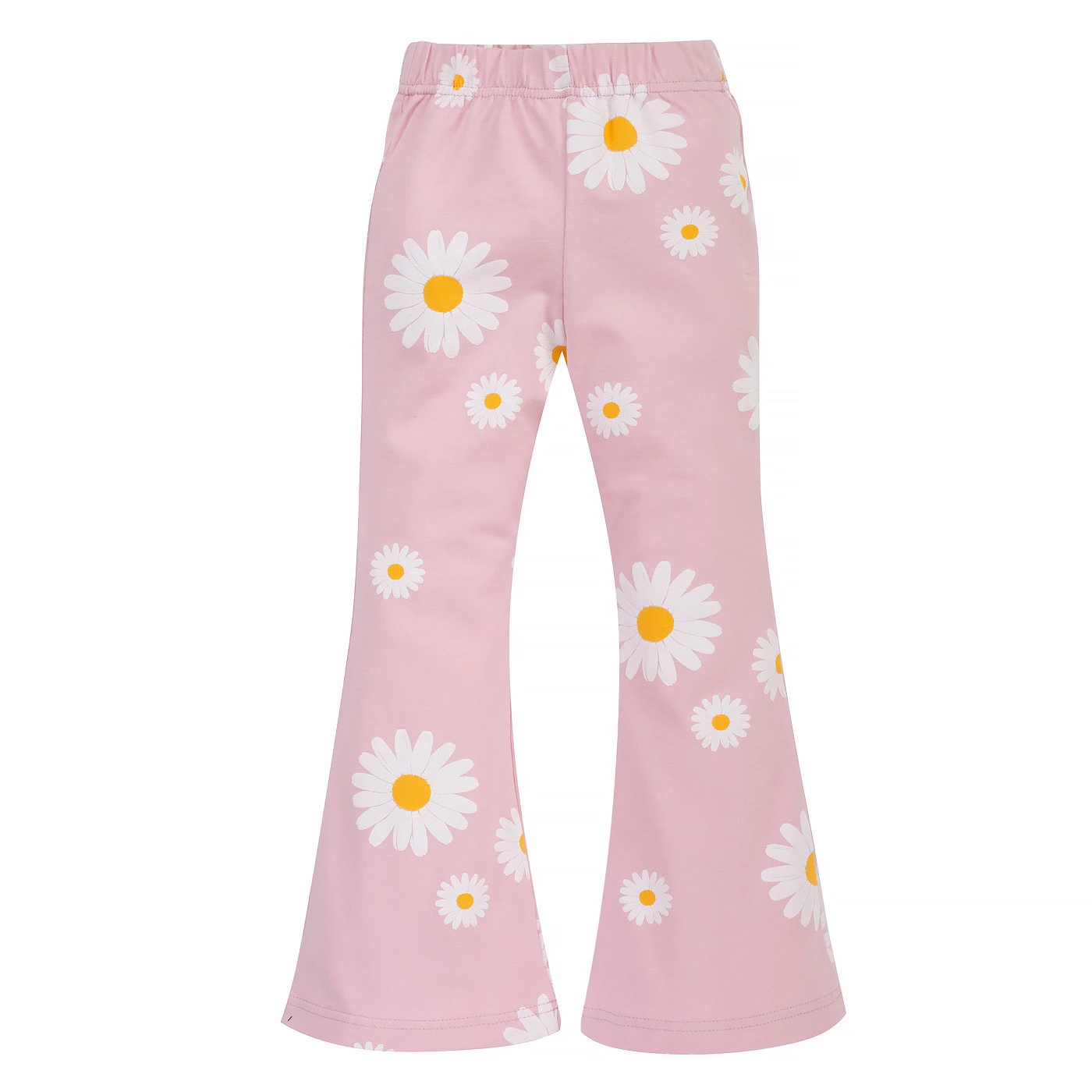 Różowe legginsy dzwony w stokrotki dla dziewczynki Daisy – styl boho i komfort na co dzień