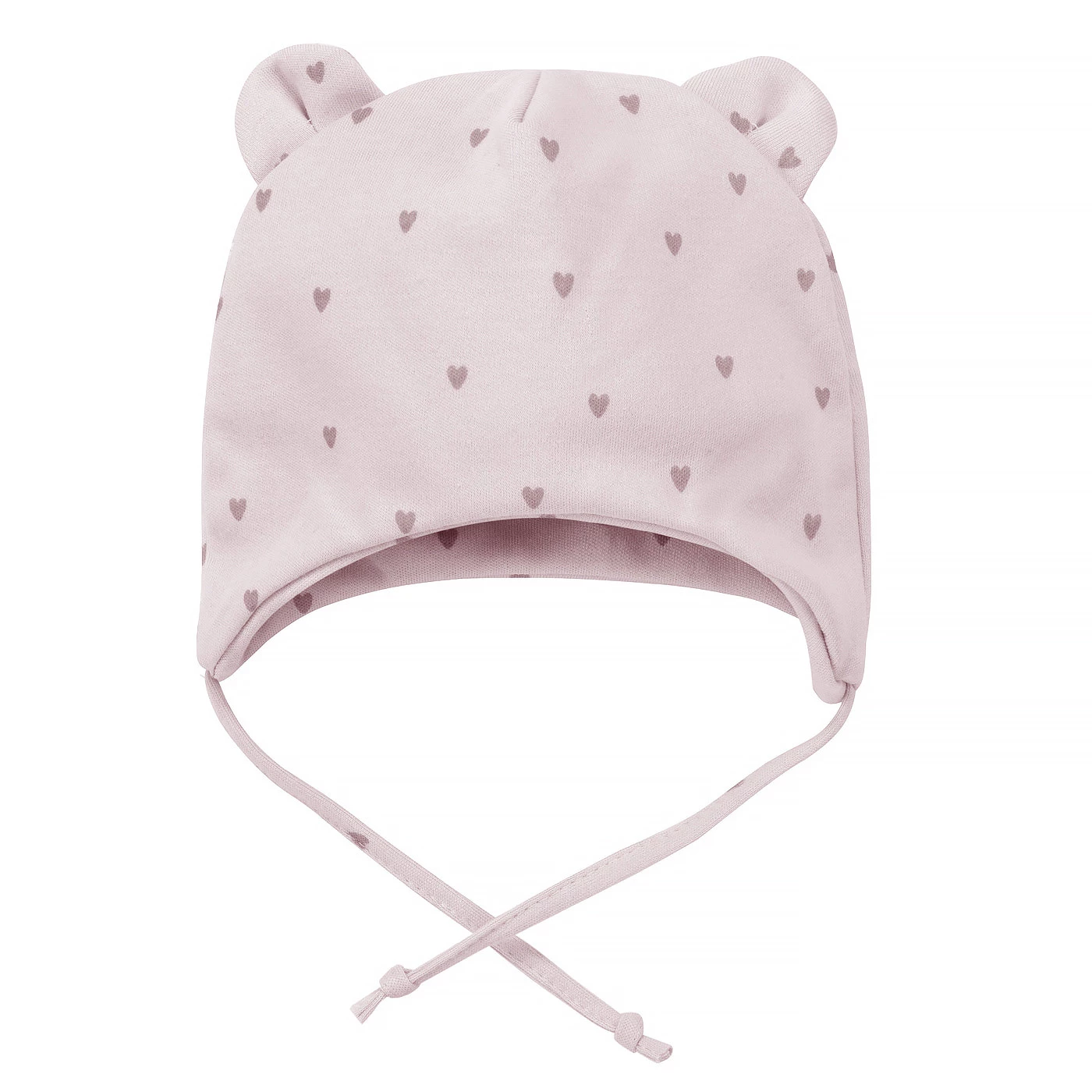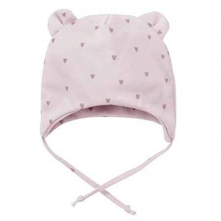 • Różowa czapka niemowlęca wiązana pod brodą w serduszka – kolekcja Hello | Pinokio