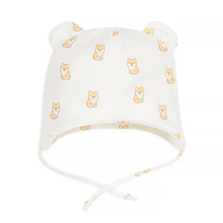 - Czapka dla niemowląt wiązana pod brodą ecru w pieski – Lovely Day | Pinokio