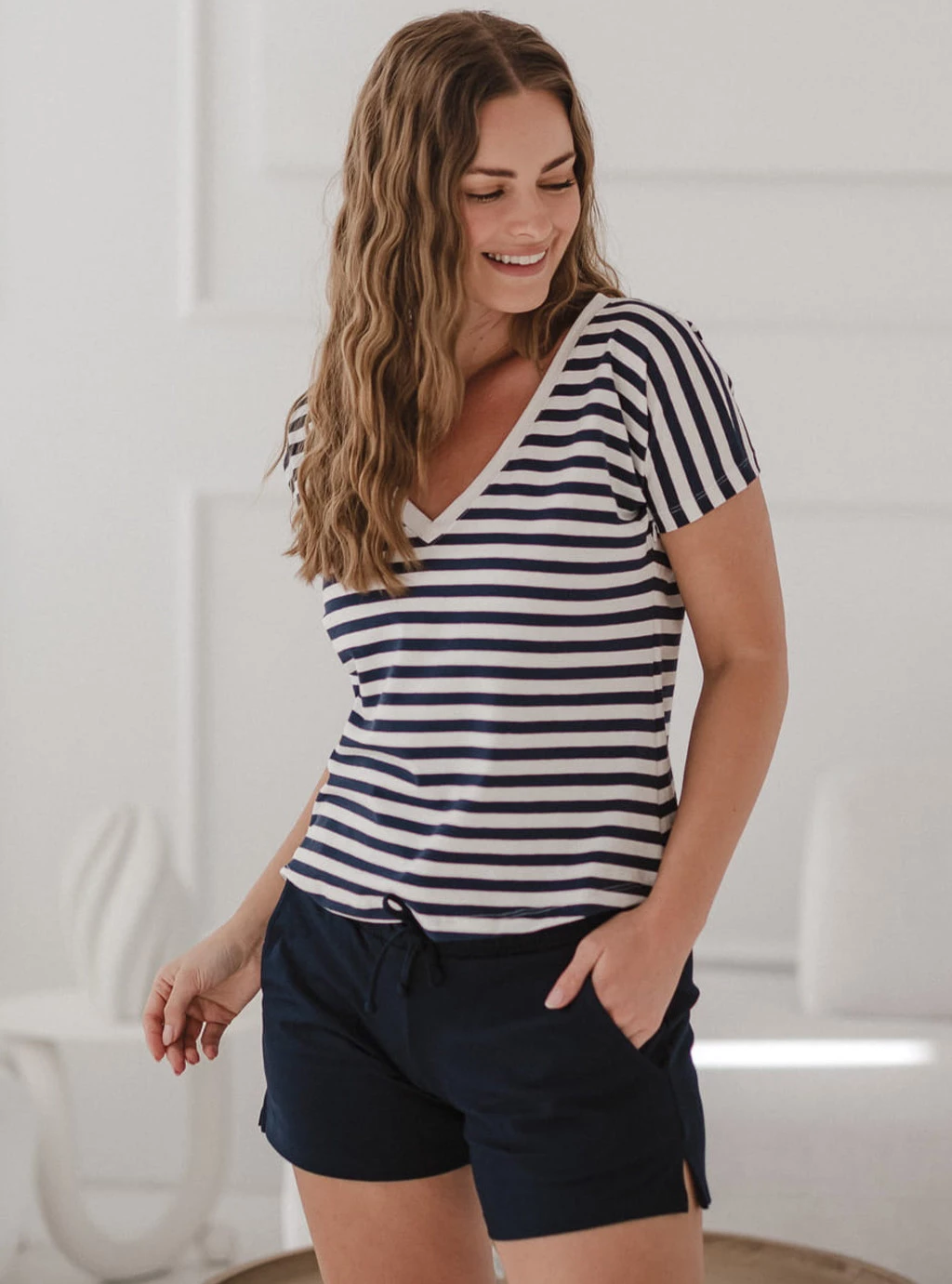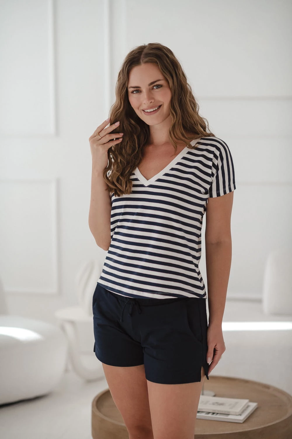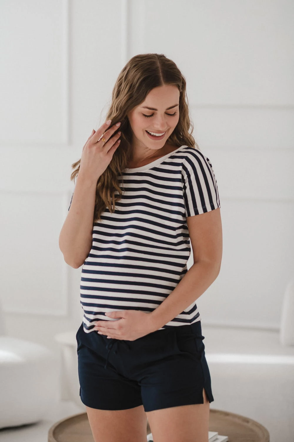 Dwustronna bluzka Two Ways krótki rękaw granatowo-białe paski
