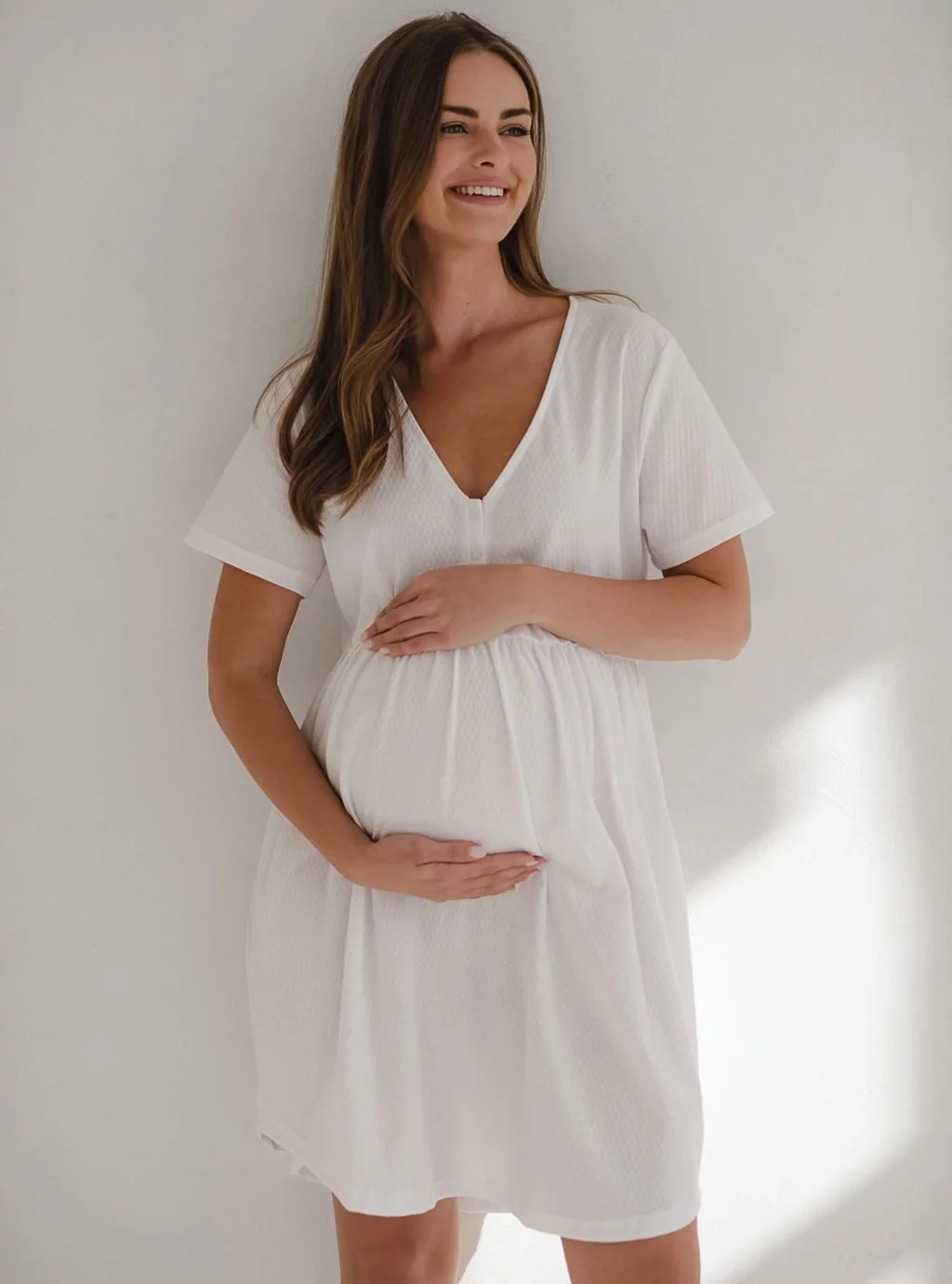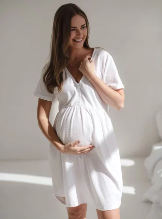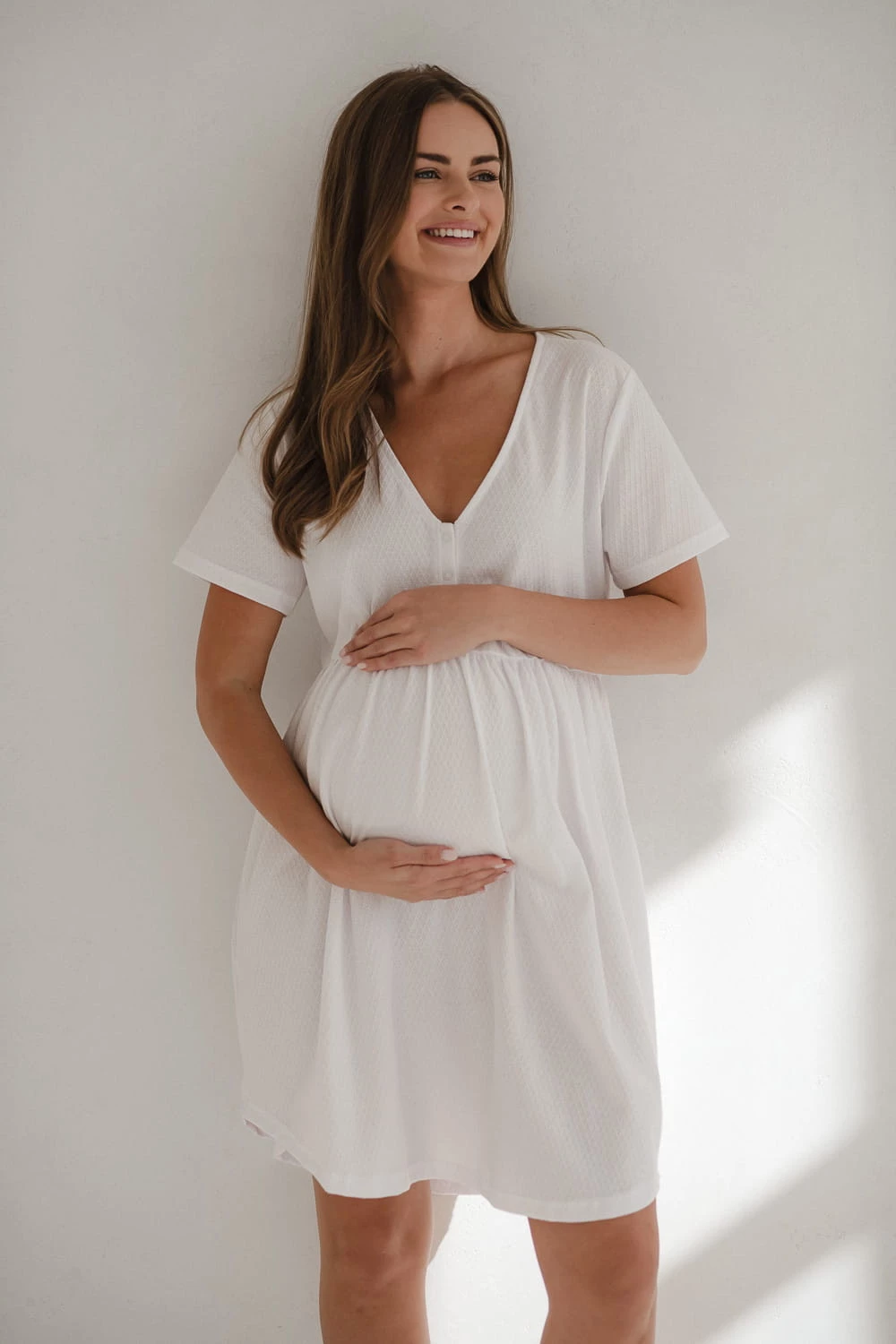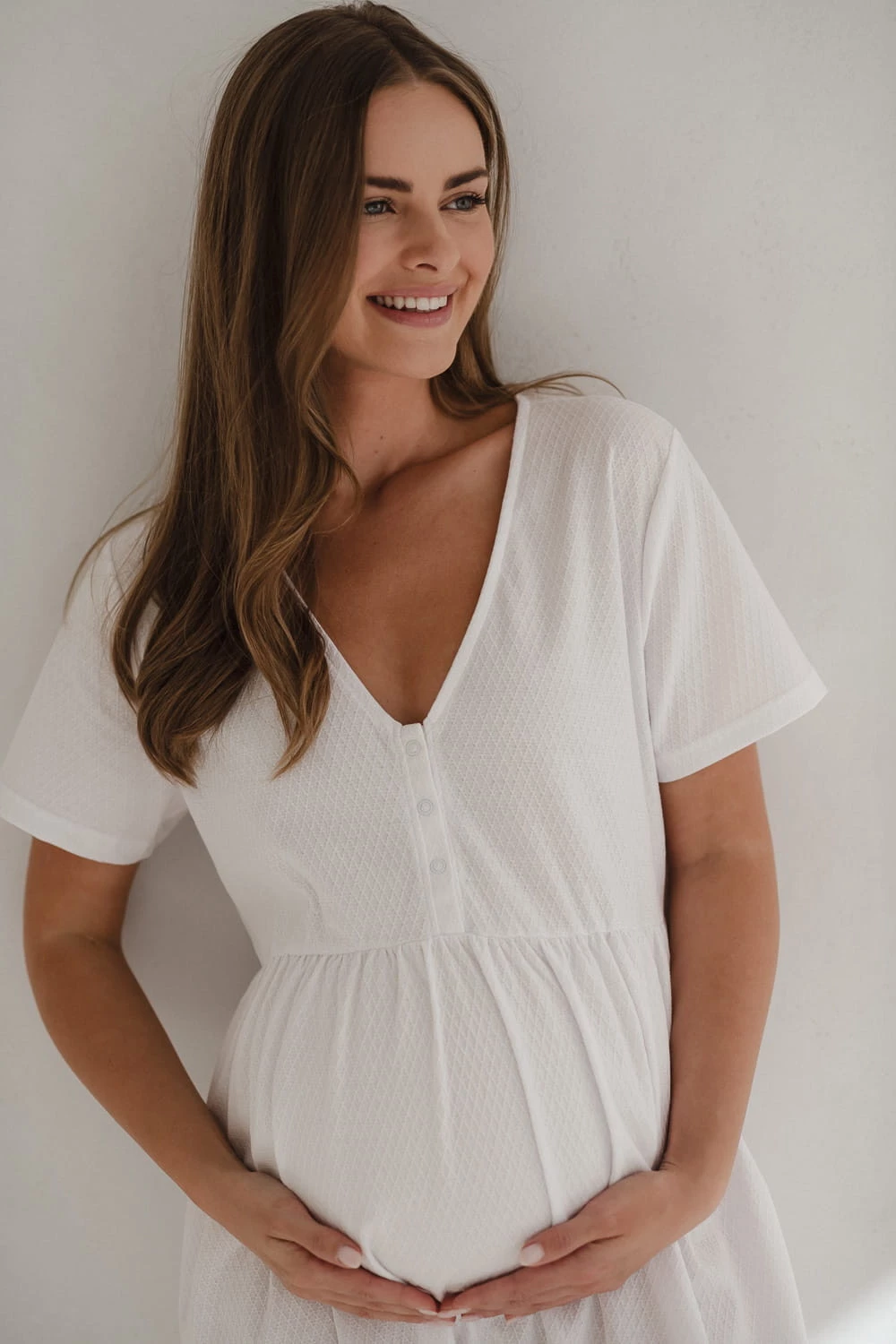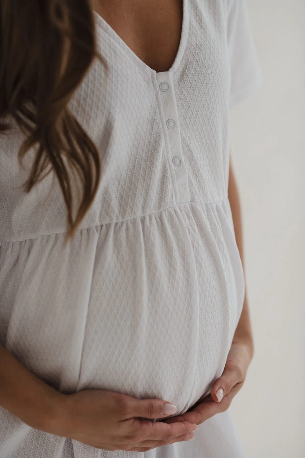Biała bawełniana koszula nocna ciążowa i do karmienia – Aurora