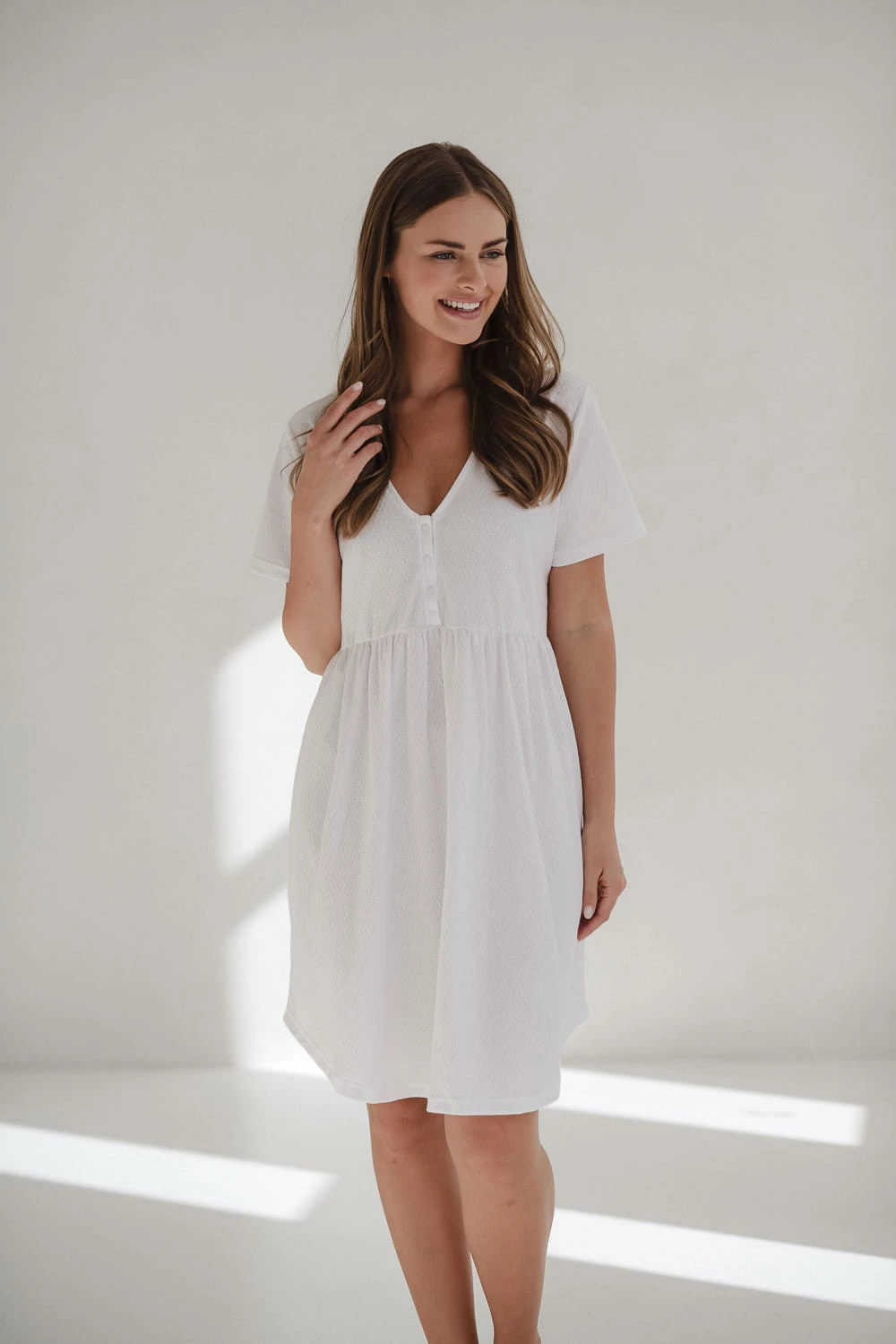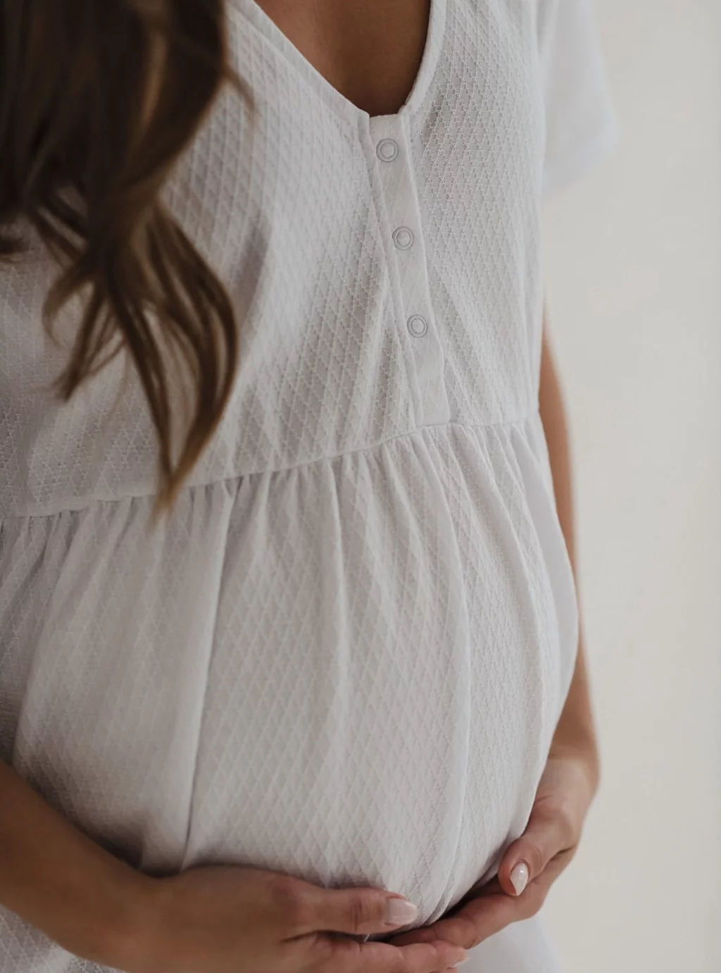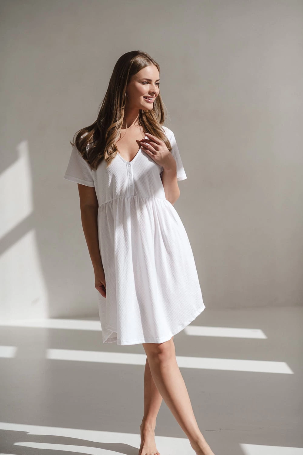 Biała bawełniana koszula nocna ciążowa i do karmienia – Aurora