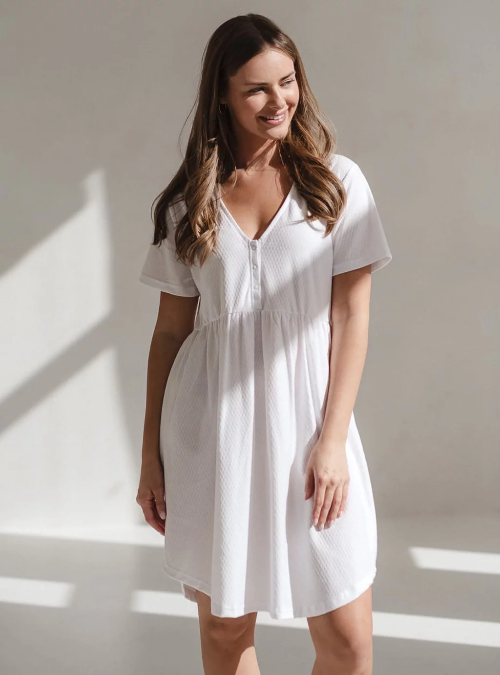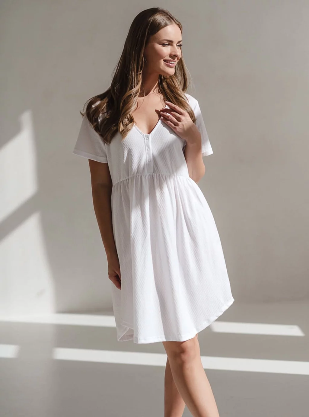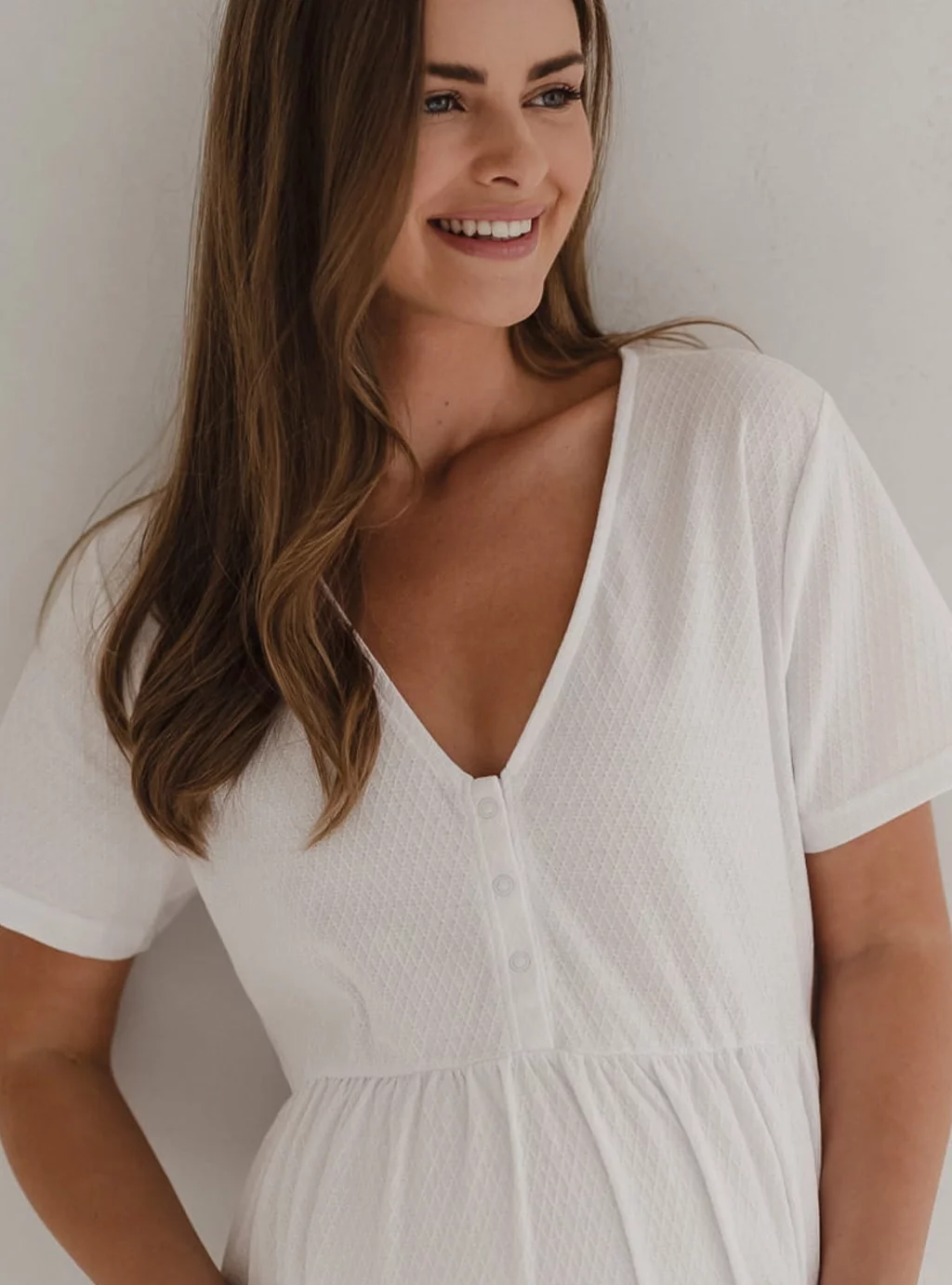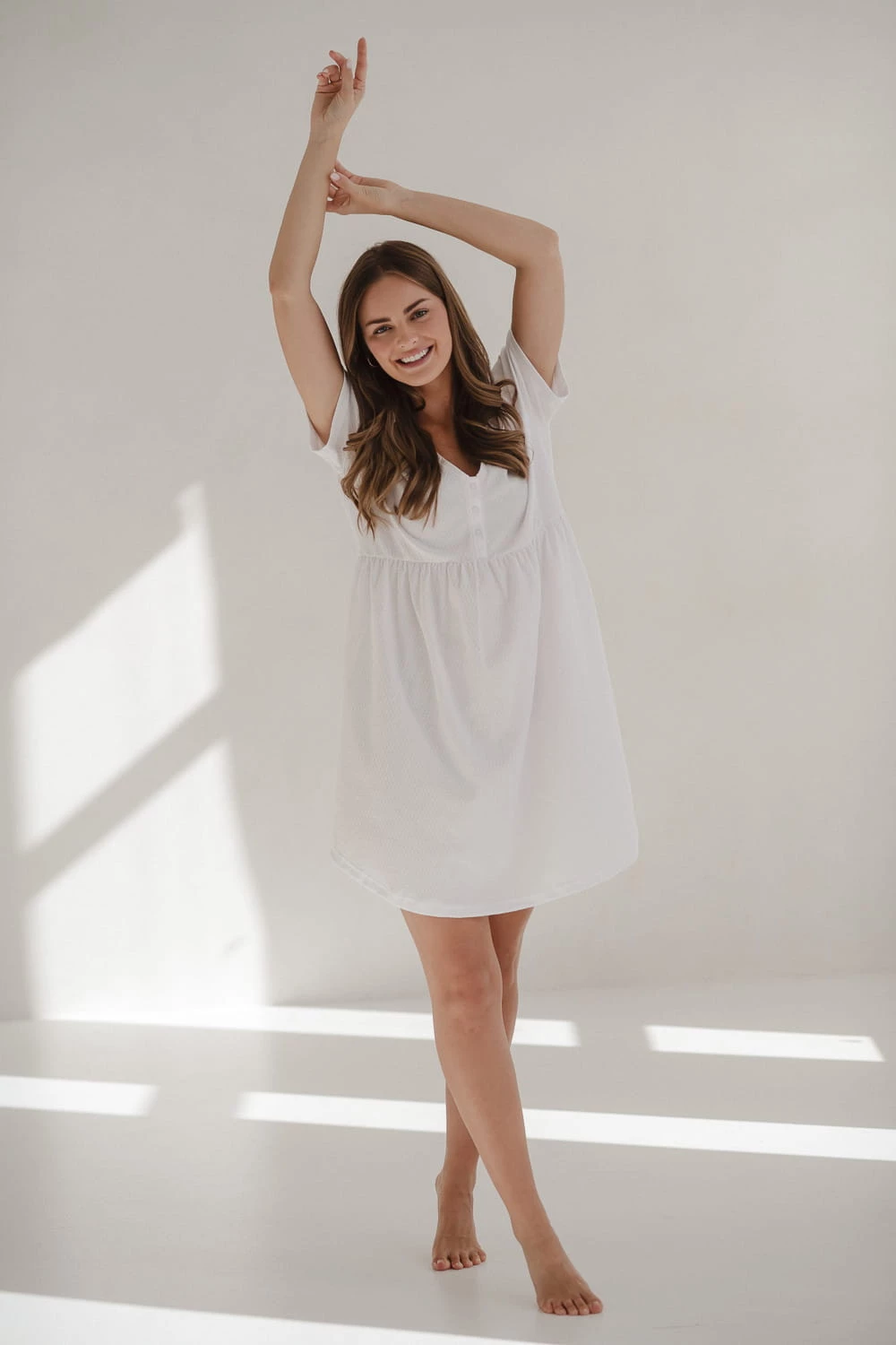Biała bawełniana koszula nocna ciążowa i do karmienia – Aurora