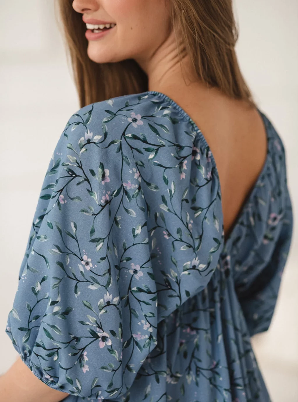 Sukienka ciążowa i do karmienia Milk Sun niebieska w kwiatuszki
