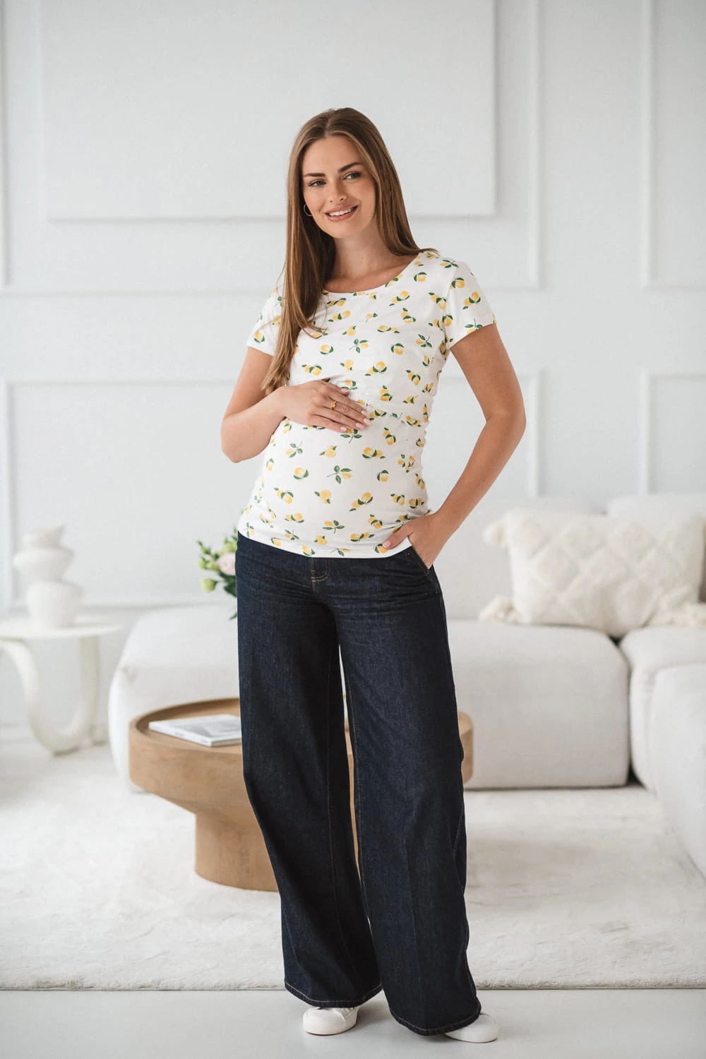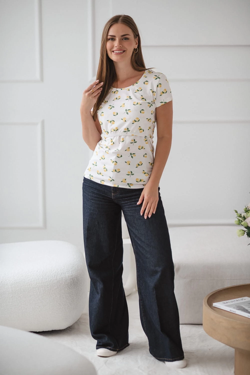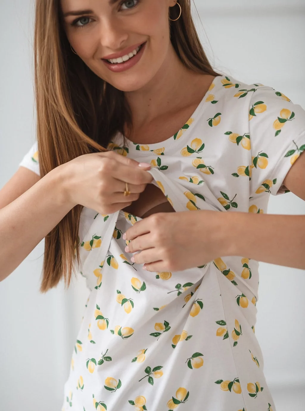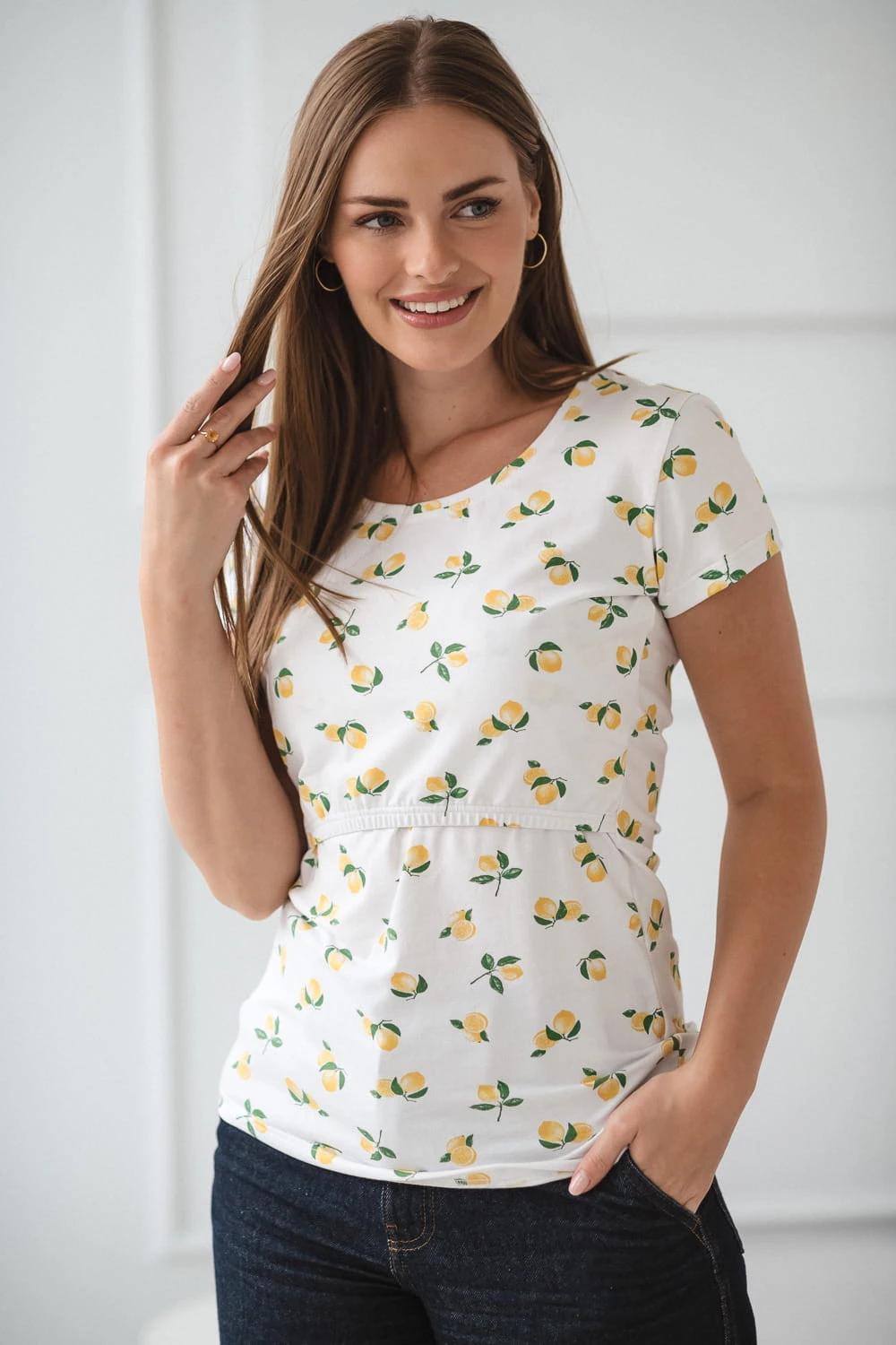 Bluzka ciążowa i do karmienia Milk Shirt krótki rękaw w cytrynki
