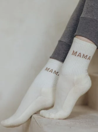 To idealny pomysł na prezent dla przyszłej mamy – na baby shower, do torby do porodu (wiele mam podkreśla, że podczas porodu stopy marzną), do zdjęć ciążowych czy po prostu do codziennego użytku w domu. Ich piękny odcień mleka z literami w kolorze kawy Latte Mama świetnie wpisuje się w styl delikatnej kobiecości.