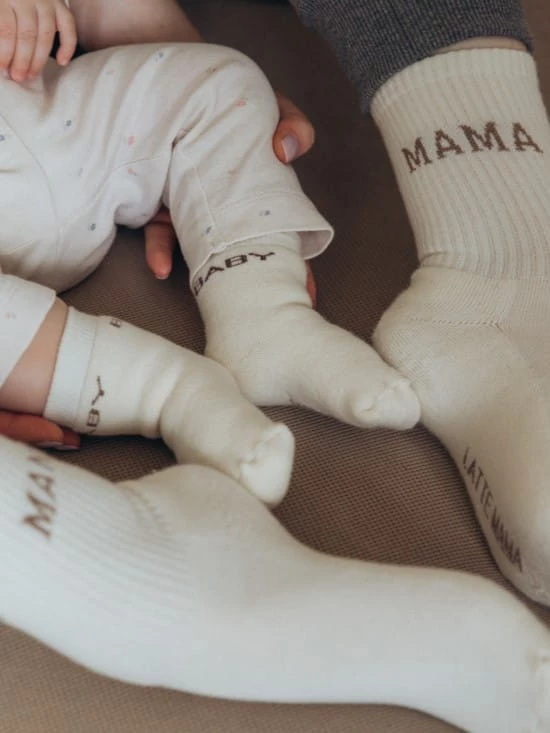 Skarpetki BABY możesz skompletować ze skarpetkami MAMA i TATA, tworząc wyjątkowy zestaw na baby shower lub prezent z okazji narodzin.