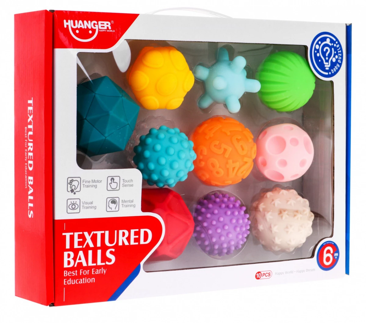 Zestaw 10 gumowych piłek dla dzieci 6m+ i dorosłych Zabawka sensoryczna Antystresowa