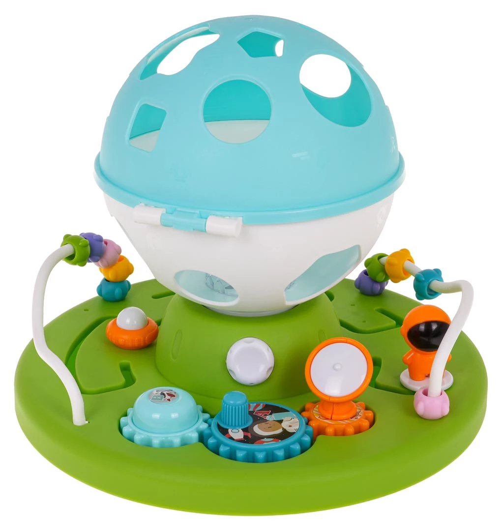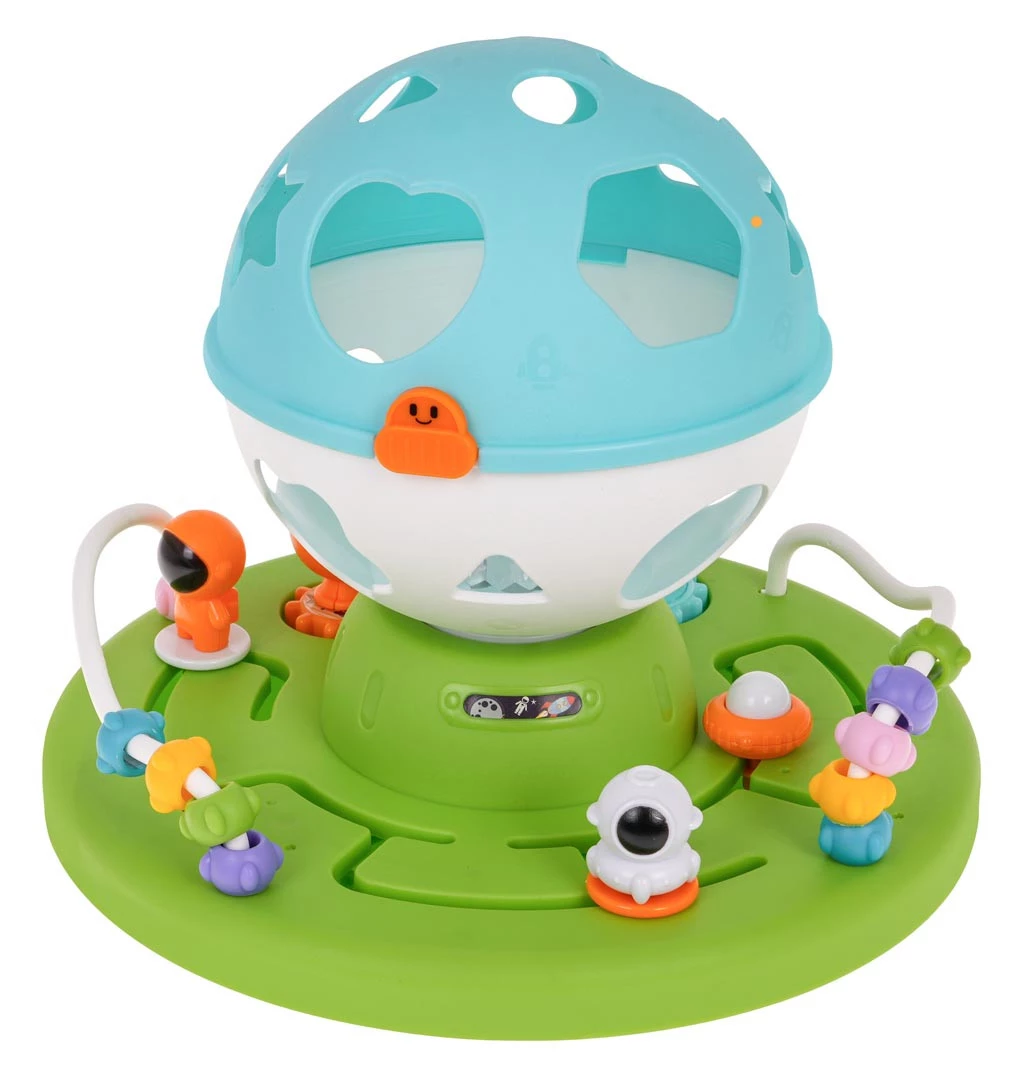 Interaktywny, edukacyjny, sorter o tematyce kosmosu dla maluszków od 18-go miesiąca życia. Sorter wykonany został z najlepszej jakości plastiku w żywych kolorach, przyciągających wzrok maluszka. Zabawka składa się z podstawki, na której znajdują się kółeczka zębate do kręcenia, labirynty do pokonania i przekładanki. Na podstawce jest również okrągły sorter z otworami w kształcie figur geometrycznych. Maluszek musi przypasować klocuszki znajdujące się w zestawie do odpowiednich kształtów na sorterze. Po dopasowaniu wszystkich klocków sorter można otworzyć i zabawę rozpocząć na nowo. W zestawie znajdują się 4 klocuszki. Dodatkowo każdy z nich w środku posiada małe kuleczki, które sprawiają, że klocuszek grzechocze. Sorter posiada również funkcję światła i dźwięku, z wnętrza kuli wydobywa się gwiezdny blask i słychać melodie. Zabawa tym sorterem uczy maluszka dopasowywać i kategoryzować według kształtu i koloru. Poprawia zdolności poznawcze i motoryczne. Dziecko poznaje przyczynę i skutek oraz doskonali umiejętności rozwiązywania problemu. Zabawka zasilana jest bateriami typu 3 x AA 1,5 V (brak w zestawie). Funkcje zestawu: - odpowiedni dla maluszka od 18-go miesiąca życia, - wykonany z najlepszej jakości plastiku w żywych kolorach, - daje mnóstwo możliwości zabawy: sorter kształtów i kolorów, koła zębate do kręcenia, labirynty, przekładanki, - funkcje dźwiękowe: melodie, grzechoczące klocki, - funkcje świetlne: projektor, - klocuszki z kuleczkami w środku, |