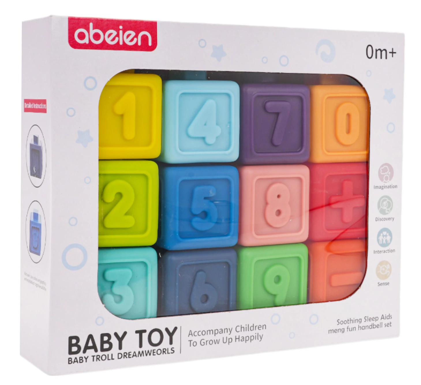Zestaw gumowych, miękkich klocków sensorycznych z działaniami matematycznymi dla dzieci od pierwszych dni życia. Zestaw składa się z 12 klocków, z których maluszek może budować różne konstrukcje i uczyć się wykonywać proste działania matematyczne. Na każdym klocuszku umieszczono różne elementy takie jak: kształty, wzory, cyfry, obrazki zwierząt. Z tym zestawem dziecko uczy się dopasowywać, liczyć, rozróżniać kolory i kształty. Zabawa klockami stymuluje rozwój logicznego myślenia i motoryki małej. Klocki wykonane zostały z nietoksycznego materiału, gwarantują pełne bezpieczeństwo podczas zabawy. Funkcje klocków gumowych: - odpowiednie dla dzieci od pierwszych dni życia, - wykonane z materiałów w 100% bezpiecznych dla dziecka, - miękkie i gumowe, - każdy klocek to bogactwo możliwości, - na każdym klocku znajdują się wesołe rysunki zwierząt, kształty, wzory, cyfry, - dają wiele możliwości, układania przeróżnych konstrukcji, - uczą prostych działań matematycznych, kolorów, kształtów, dopasowywania, - stymulują rozwój logicznego myślenia i motoryki małej |