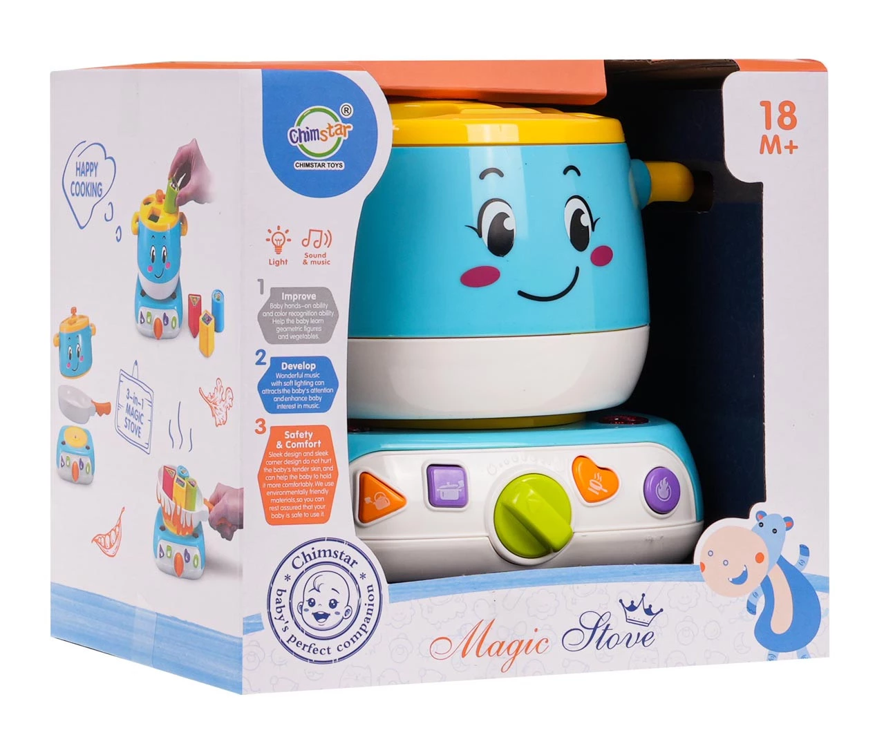 Niesamowita, kolorowa interaktywna kuchenka z garnkiem i sorterem to zabawka przeznaczona dla dzieci już od 18 miesięcy życia. Zestaw charakteryzuje się wesołym wyglądem i radosnymi kolorami, z pewnością przyciągnie uwagę maluszka. Przez zabawę tą zabawką twoja pociecha nauczy się rozróżniać kolory i kształty oraz rozwinie zdolności manualne. Kuchenka posiada efekty dźwiękowe i świetlne, wydaje odgłosy gotowania wody w czajniku, gotowania potrawy, smażenia, zapalania gazu, wesołe melodyjki, podczas odgłosów mrugają się światełka po bokach kuchenki. Garnek dołączony do kuchenki jest zarazem sorterem, dziecko musi dopasować klocuszki do otworów, nie jest to łatwe zadanie, ale gdy już mu się to uda odczuje dumę, zadowolenie i satysfakcje. Zabawka zasilana jest bateriami typu 2 x AA 1,5V (których brak w zestawie). Funkcje zabawki: - odpowiednia dla dzieci od 18-go miesiąca życia, - wykonana z najlepszej jakości plastiku, - żywe kolory przyciągają wzrok dziecka i zachęcają do zabawy, - posiada efekty świetlne w postaci mrugających światełek po bokach kuchenki, - posiada efekty dźwiękowe: odgłos gotowania wody i potraw, odgłosy smażenia, odgłosy zapalania gazu, wesołe melodyjki, - sorter kształtów, - nauka rozróżniania kolorów i kolorów, - uczy dopasowywania, rozwija zdolności manualne. |