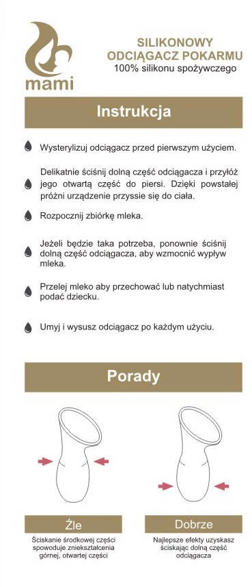 Jest łatwy w użyciu, przed umieszczeniem go na brodawce, wystarczy delikatnie ścisnąć jego dolną część - kolektor działa na zasadzie delikatnego i bezbolesnego przyssania do ciała. W przypadku słabego działania, należy ponownie ścisnąć zbiorniczek.