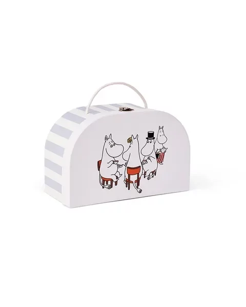 - Walizka z ilustracją rodziny Muminków – idealna na zabawkową zastawę, piknik lub dziecięce skarby. Z bawełnianym uchwytem i metalowym zamknięciem.