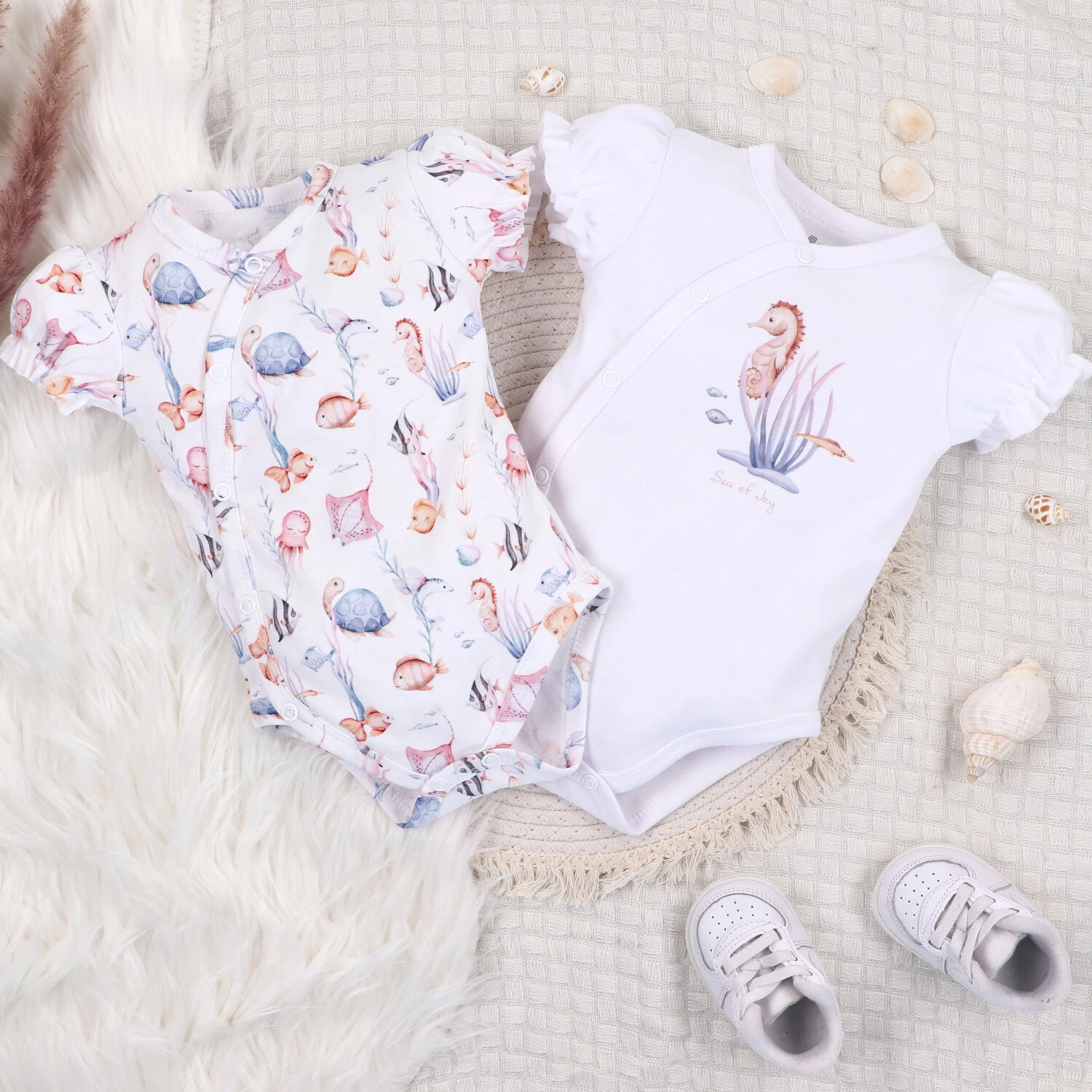Body Kopertowe Z Krótkim Rękawem Underwater World Z Bawełny Organicznej Konik Morski Biały