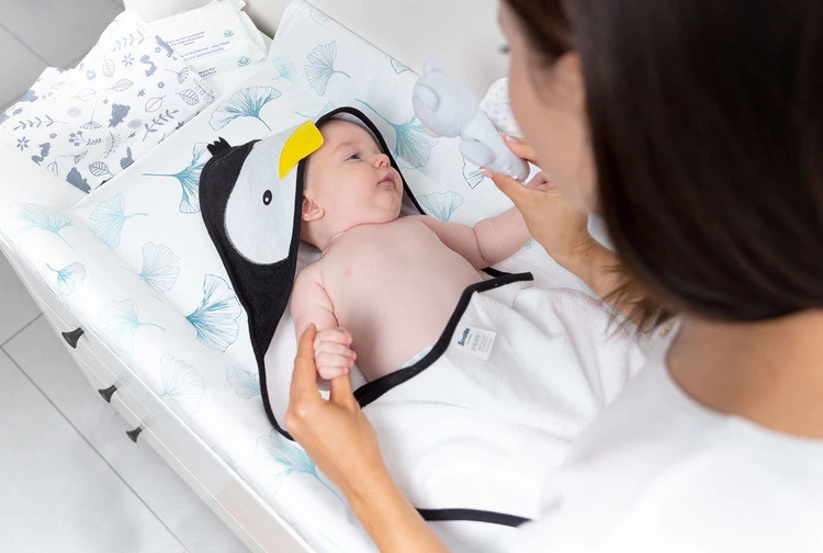 Z nowymi okryciami Water Friends kąpiel to czysta radość. Dzieci i ich rodziców. Wykonane w 100% z bawełnianej tkaniny frotté, dzięki czemu są chłonne i szybko wysychają. Rodzice docenią również ich staranne, niepodrażniające skóry szycie. Kapturek ozdobiony jest zabawnym pyszczkiem wodnego zwierzątka, innym dla każdego koloru.