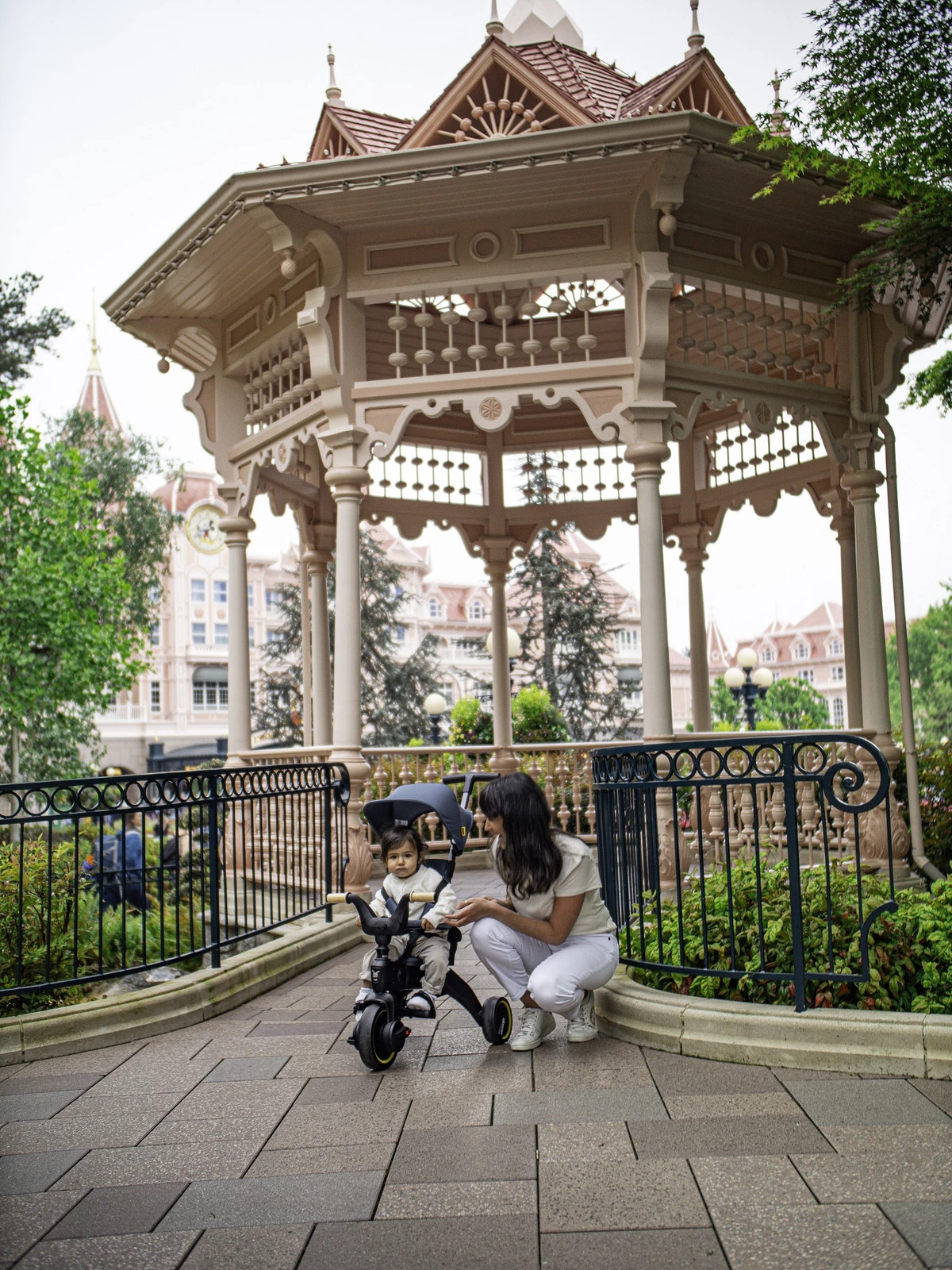 Rodzic kontroluje jazdę malucha na rowerze, dzięki rączce umieszczonej z tyłu rowerka. W tym okresie dziecko podróżuje rowerkiem z wygodnym oparciem, z podnóżkiem na nóżki, podłokotnikiem oraz budką UV. Maluch zapięty pasami bezpieczeństwa w rowerku.