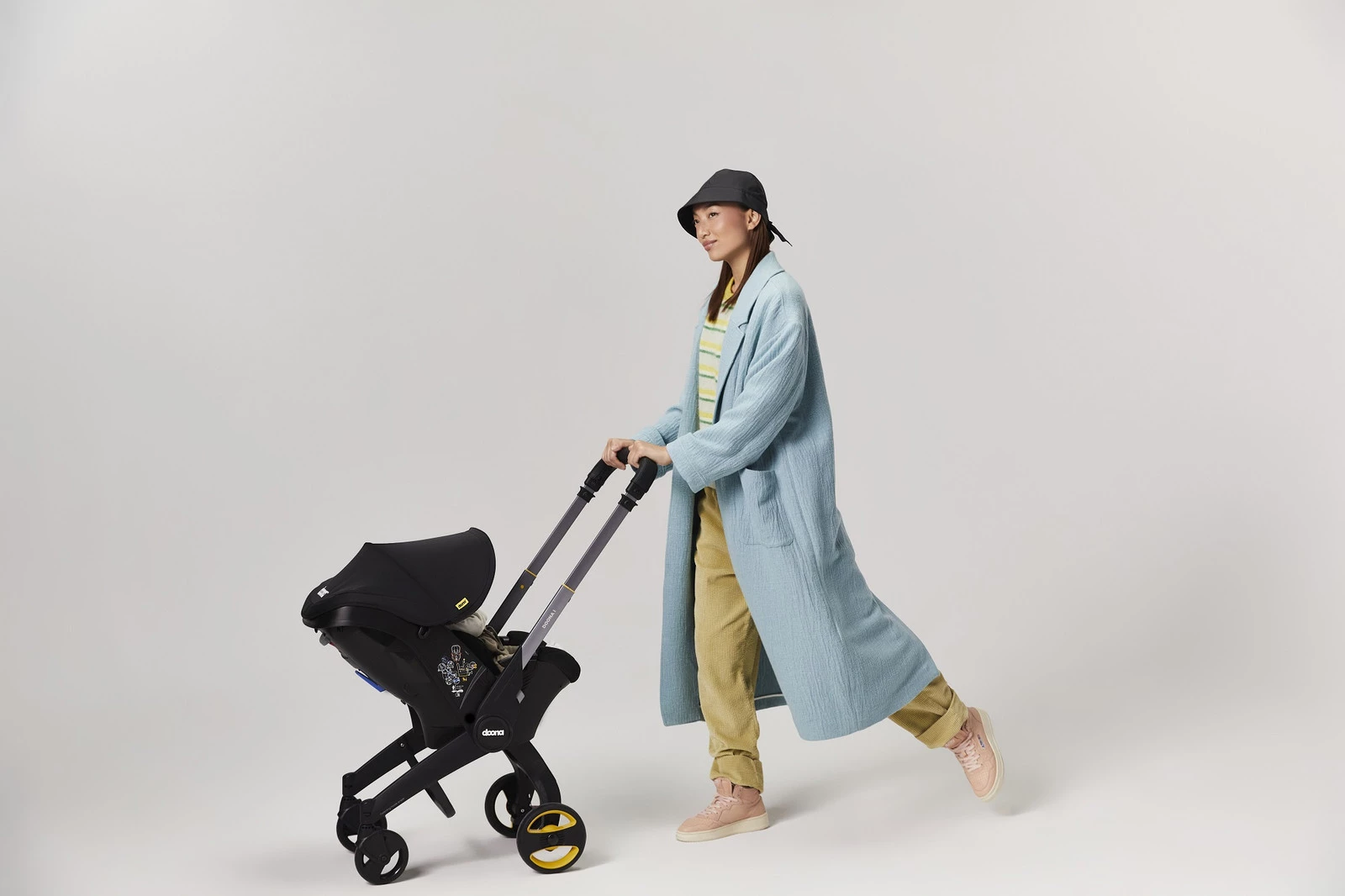 Doona i to innowacyjny fotelik samochodowy z funkcją wózka – zaprojektowany tak, aby ułatwić codzienne życie rodzicom. Dzięki opatentowanemu systemowi składania, przejście z trybu fotelika do wózka zajmuje tylko chwilę – bez budzenia dziecka. Nowy system pull-along pozwala wygodnie prowadzić wózek w zatłoczonych lub ciasnych przestrzeniach.