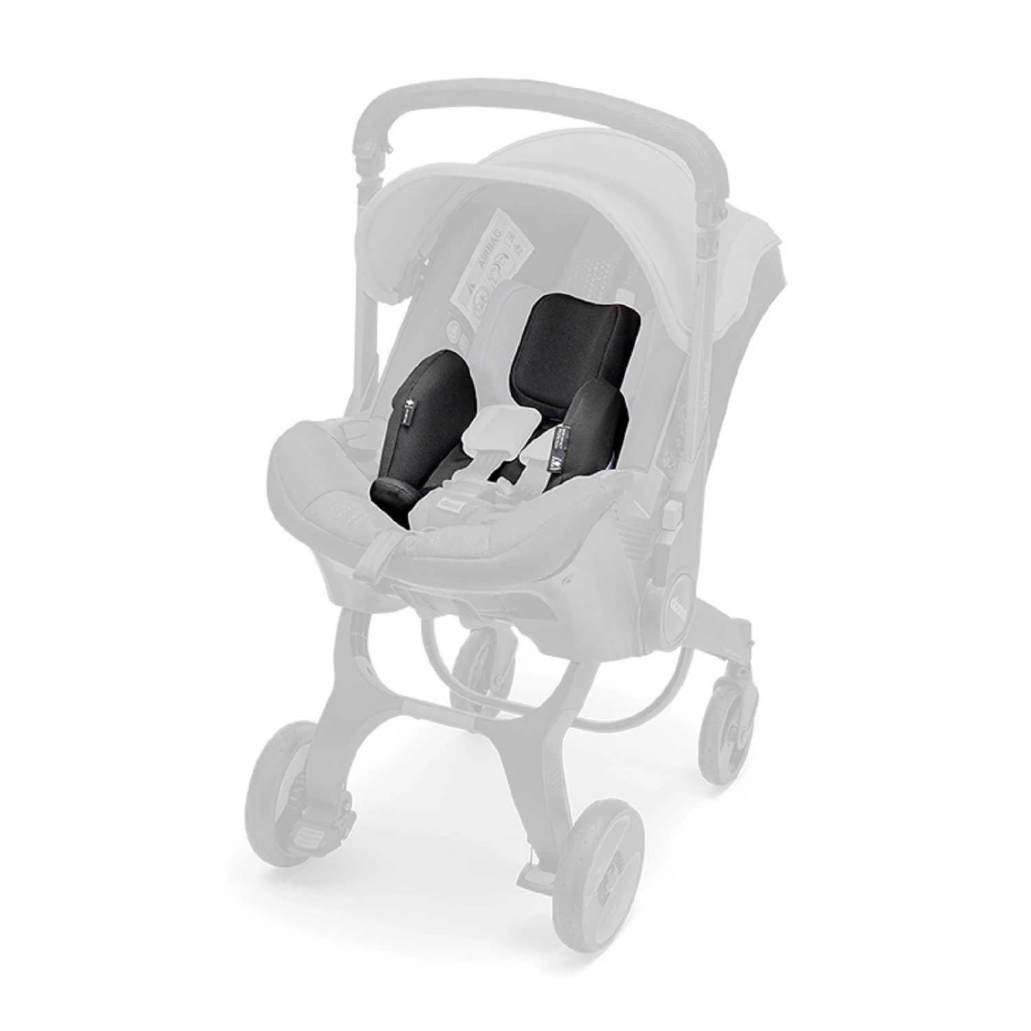 Funkcja samozapinania naramienników umożliwia łatwe przymocowanie ich do dolnej części zagłówka, co znacznie ułatwia zapięcie dziecka w foteliku i wózku samochodowym Doona i.