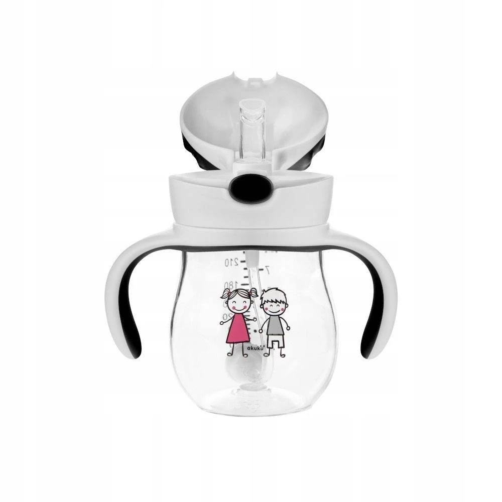 Bidon z silikonową słomką zakończoną odważnikiem umożliwia picie pod każdym kątem. Wykonany z nowoczesnego tworzywa – TRITANU, całkowicie wolny od bisfenolu A (0% BPA). Technologia ta powoduje, że bidon się nie rysuje i nie przebarwia. Jest bardzo odporny na uszkodzenia, a wyglądem przypomina szkło. Dziecko pije do ostatniej kropelki. Twój maluszek może pić przechylając kubek nawet do góry nogami. Niezastąpiony w domu i w podróży. Szczelne zamknięcie zapobiega wylewaniu się picia i chroni słomkę przed zabrudzeniem. Wygodne otwieranie poprzez naciśnięcie guziczka. Transparentność i wyraźna podziałka pozwala na kontrolowanie ilość płynu. Kubek można myć w zmywarce na górnej półce (ale bez słomki).