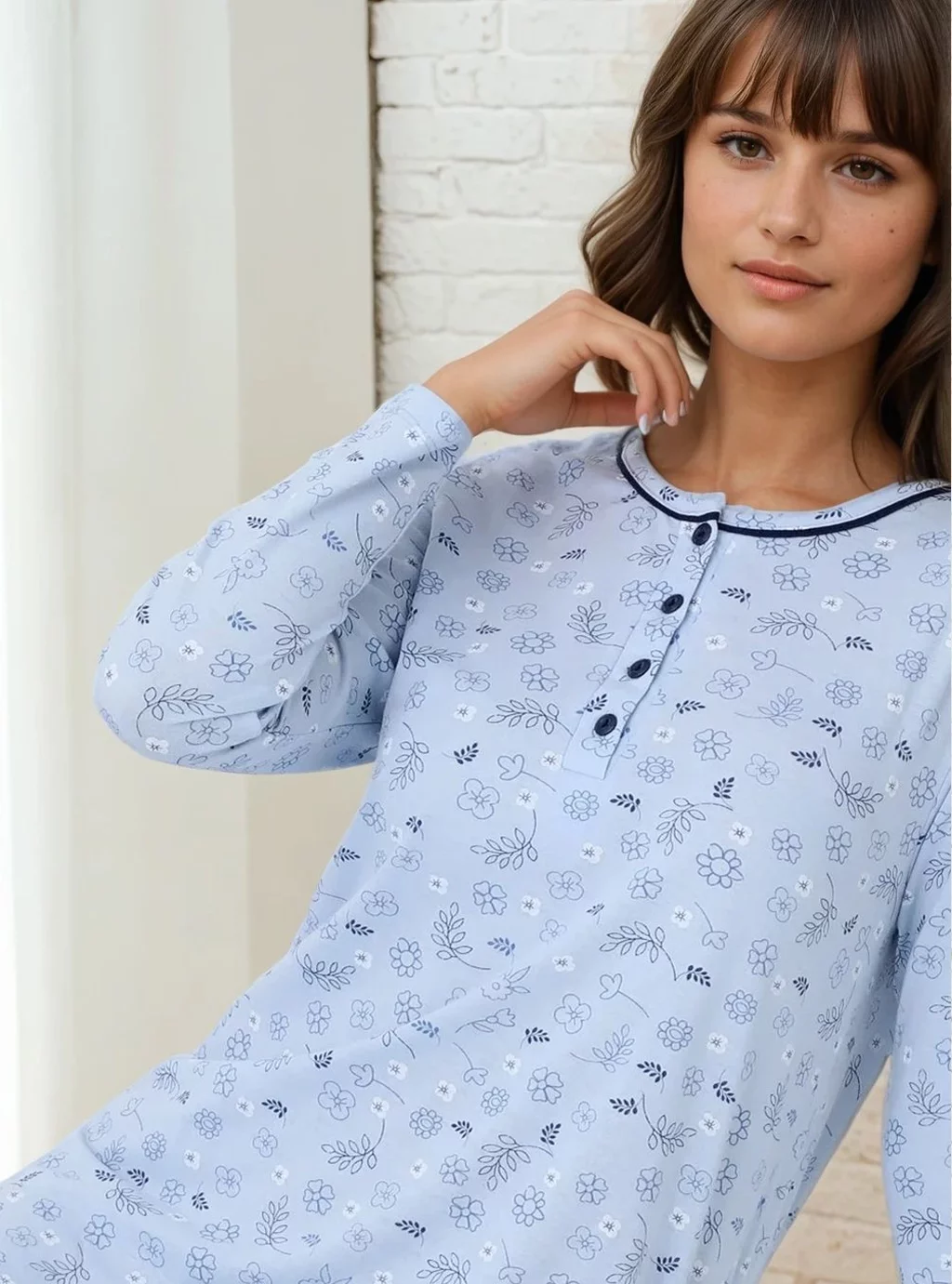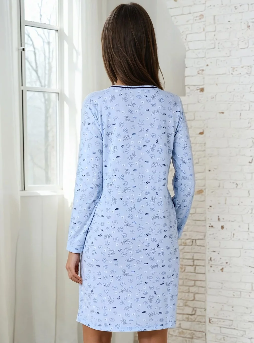 Koszula ciążowa z długim rękawem w kwiaty – niebieska