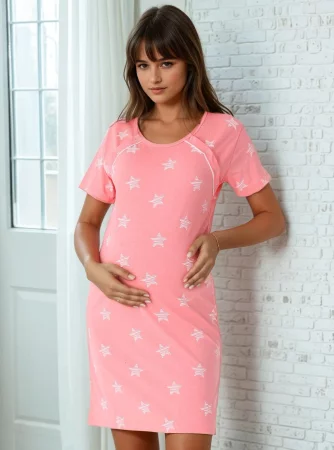 Szukasz koszuli nocnej do karmienia piersią, która będzie przewiewna i przyjemna w dotyku? Model Gwiazdy spełni Twoje oczekiwania. Koszula ciążowa rozpinana na napy z dwóch stron to praktyczne rozwiązanie zapewniające łatwość karmienia oraz swobodę ruchów. Uszyta ze 100% bawełny gwarantuje komfort zarówno w ciąży, jak i w połogu.