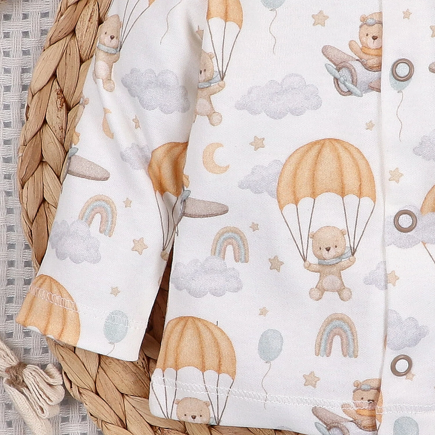 ➡️ Kaftanik z kolekcji Sky journey podstawowy element wyprawki niemowlęcej. Zapinany na napy co ułatwia zakładanie i zdejmowanie odzieży. Wyprodukowany w Polskiej firmie dbającej o każdy detal i szczegół.