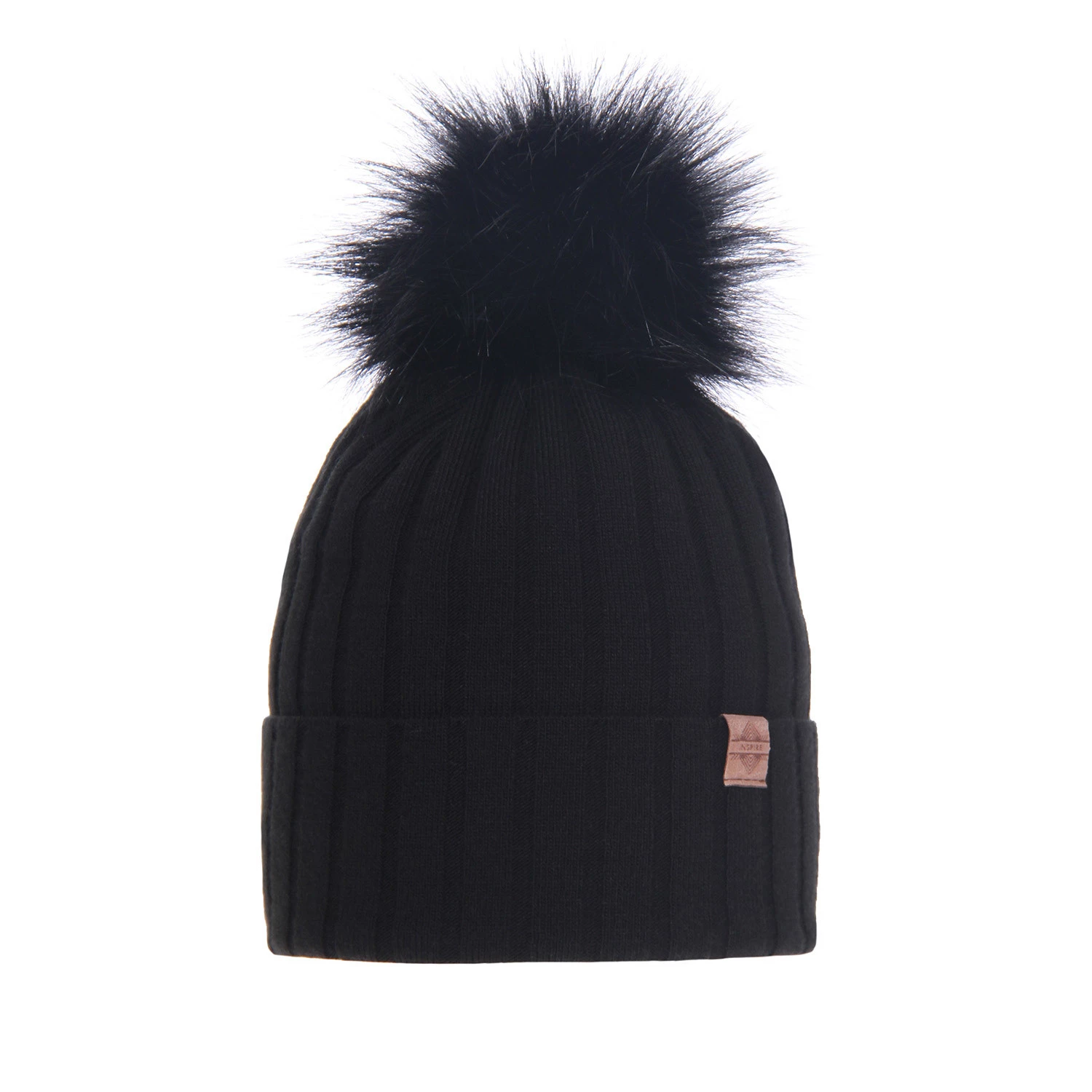 Czapka zimowa damska, czarna, z pomponem, Loara