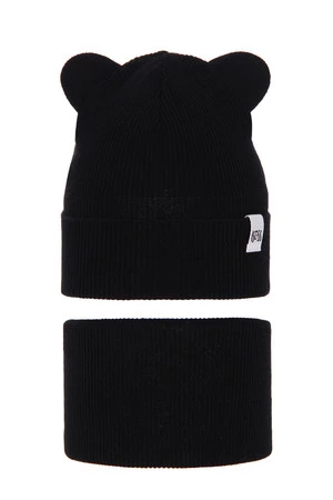 Czapka i komin dla dziewczynki jesienny, wiosenny komplet, z bawełną, czarny Kajra