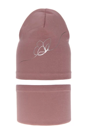 Czapka i komin dla dziewczynki jesienny, wiosenny komplet, wrzosowy, bawełniany Jula