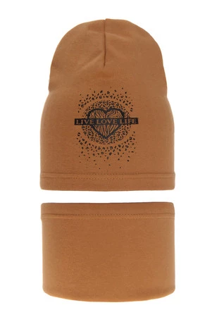 Czapka i komin dla dziewczynki jesienny, wiosenny komplet, camel, bawełniany Esmeralda