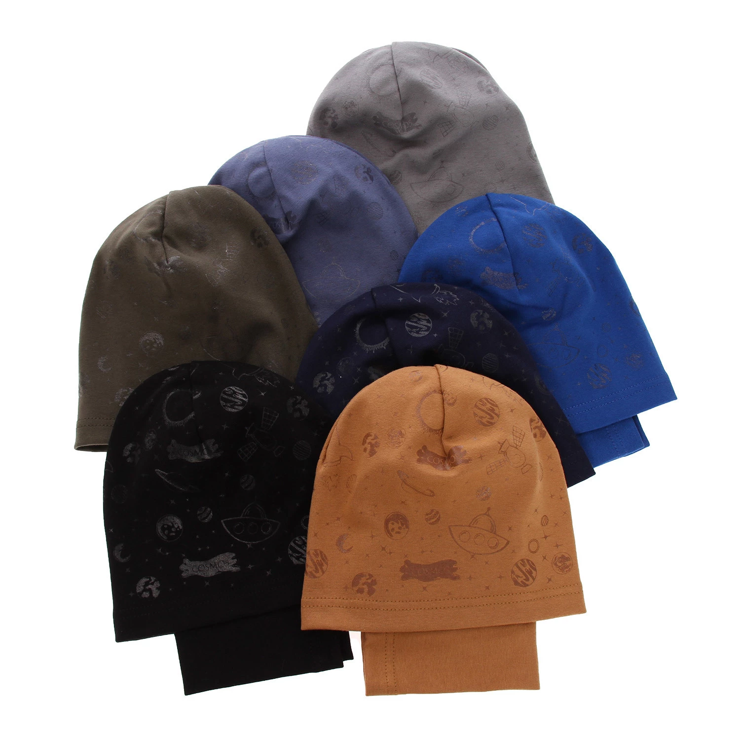 Czapka i komin dla chłopca jesienny, wiosenny komplet, niebieski, bawełniany Kosmos