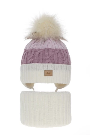 Czapka i komin dla dziewczynki zimowy komplet, kremowy, z pomponem Riviera