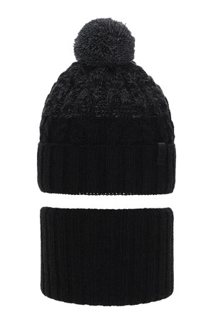Czapka i komin dla chłopca zimowy komplet, czarny, z pomponem Travis