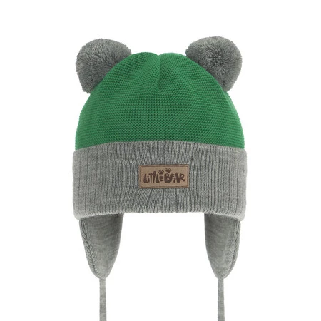Czapka jesienna, wiosenna dla chłopca, szara, z dwoma pomponami, wiązana Gigant