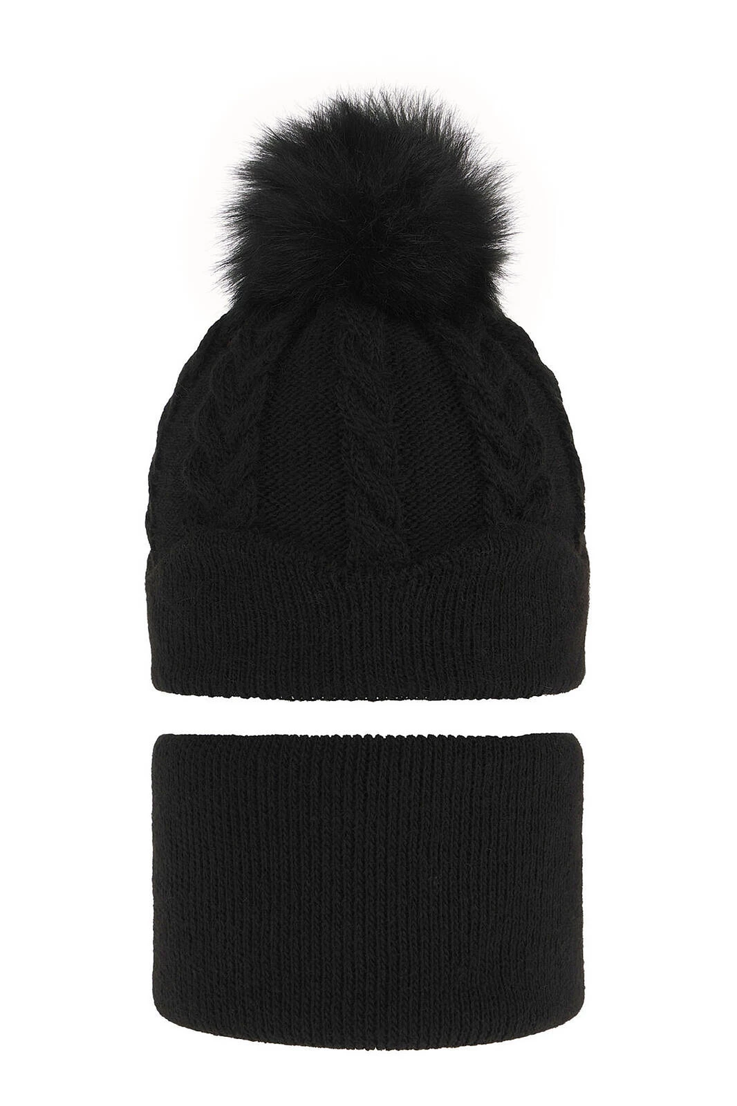 Czapka i komin dla dziewczynki zimowy komplet, czarny, z pomponem Etula