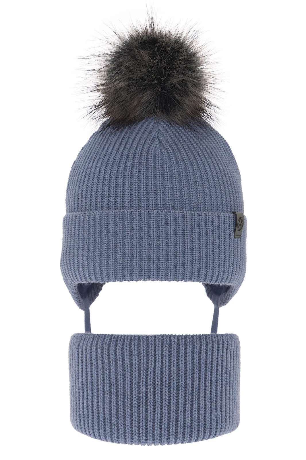 Czapka i komin dla chłopca zimowy komplet, jasnoniebieski, wiązany, z pomponem Honed