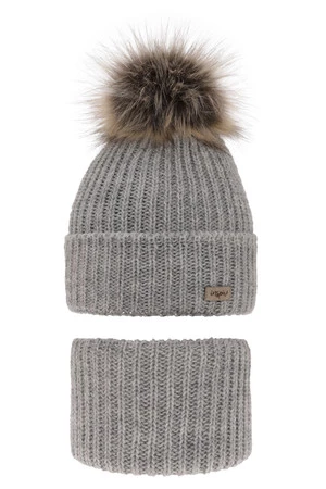 Czapka i komin dla dziewczynki zimowy komplet, szary, z pomponem Willow