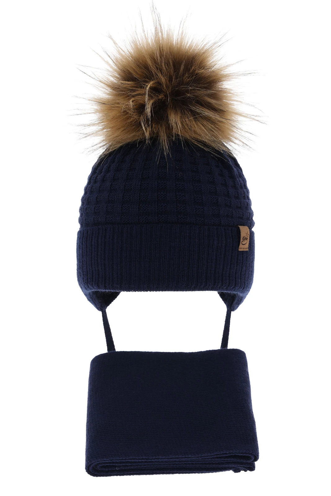 Czapka i szalik dla chłopca zimowy komplet, granatowy, wiązany Salem