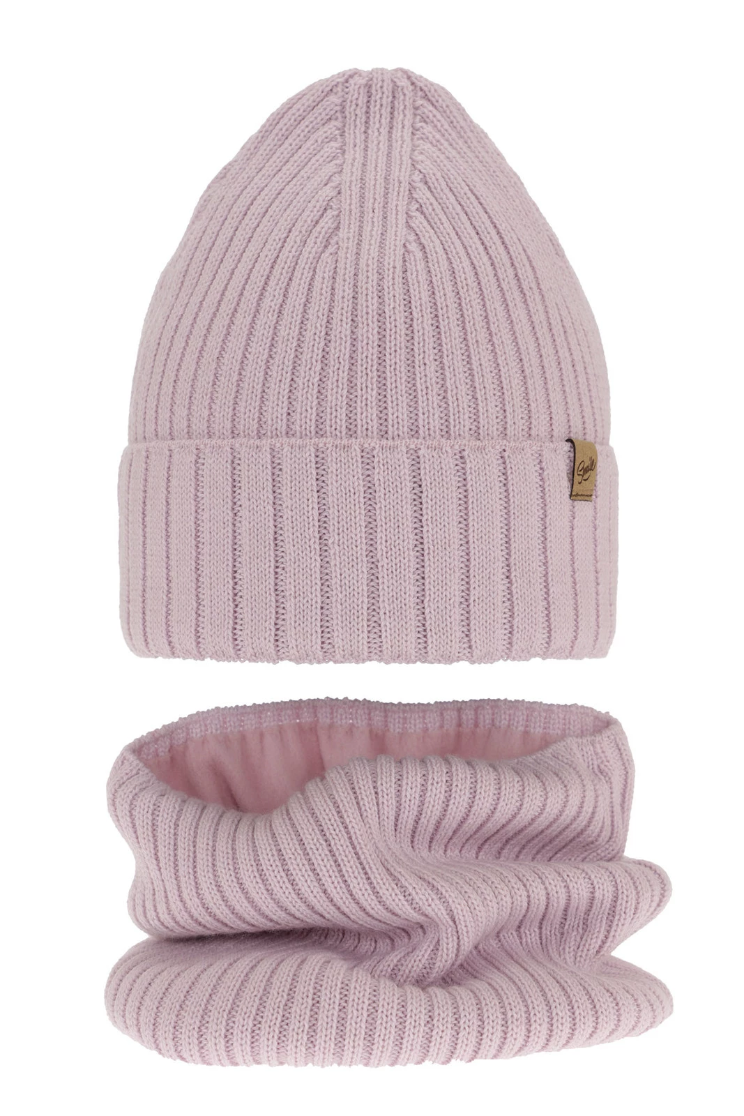 Czapka i komin dla dziewczynki zimowy komplet, liliowy, wełniany merino Mesalia