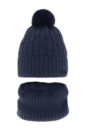 Czapka i komin dla chłopca zimowy komplet, niebieski, z pomponem, wełniany merino Talar